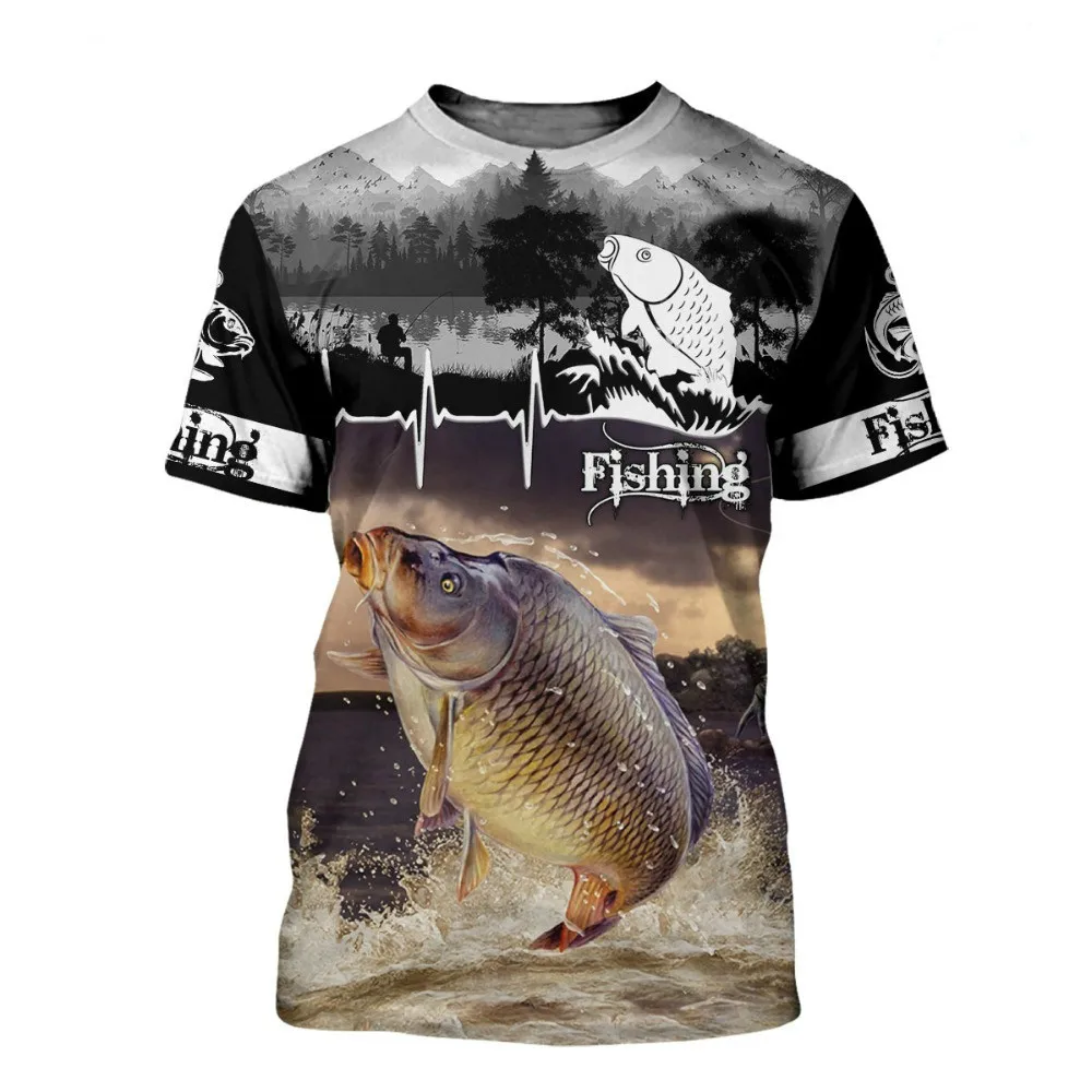 Мужская футболка для отдыха, рыбалки, карпа с 3D принтом, модная фу...