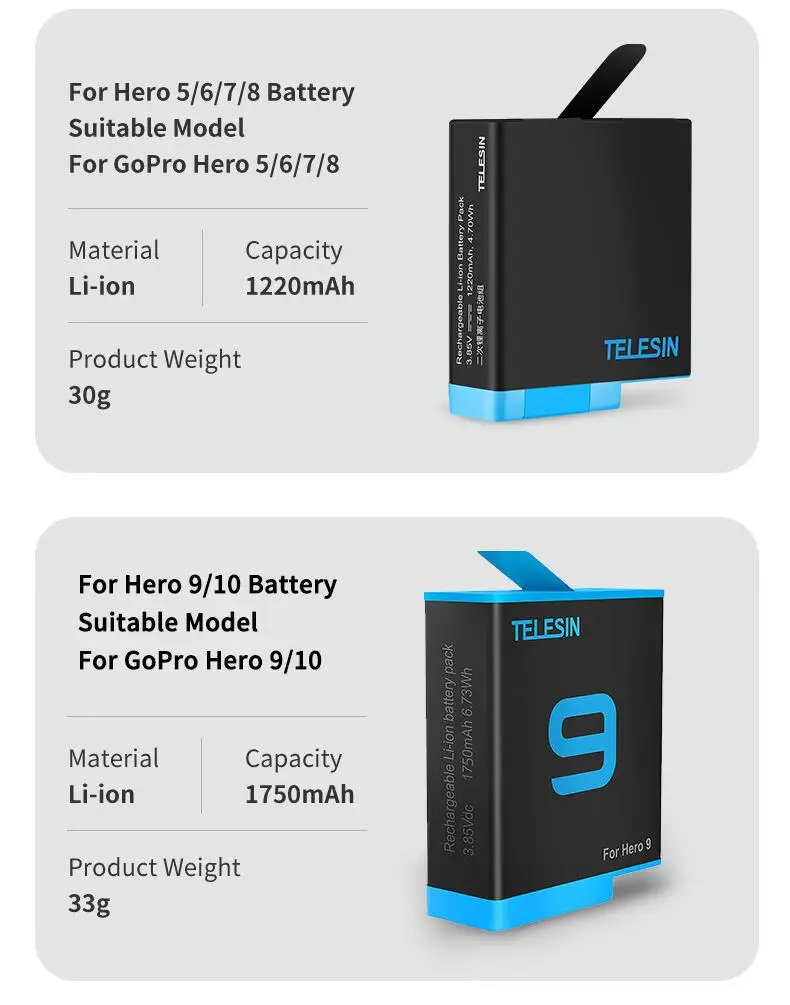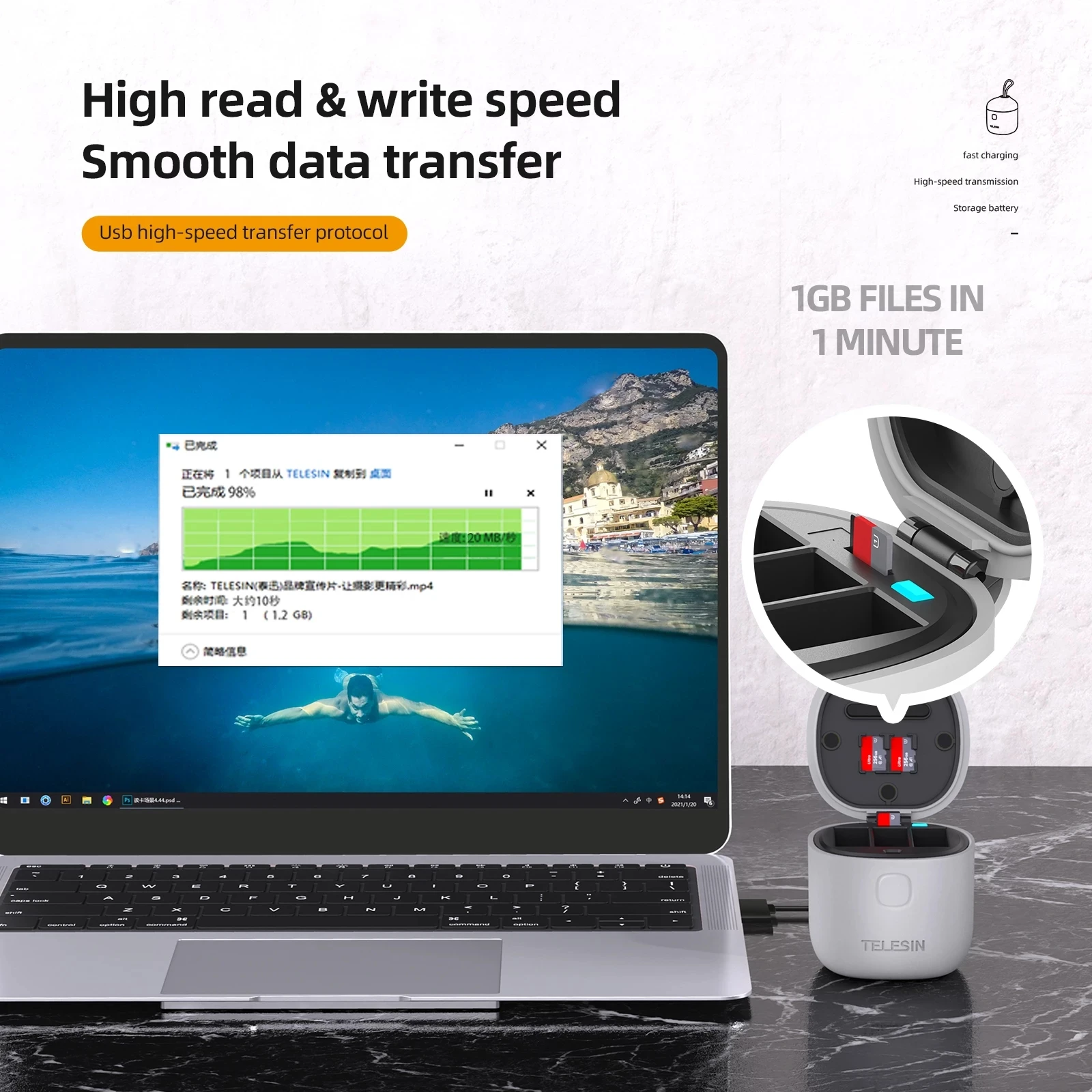 Телесин по 3 предмета в комплекте Батарея 3 слота Батарея Зарядное устройство с устройство для считывания с tf-карт футляр для хранения с функцией зарядного устройства для экшн-камеры Gopro Hero 8 7 черный Hero 6 5