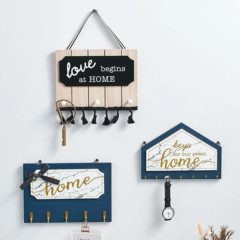 Настенный подвесной крючок для ключей, деревянный держатель, настен...