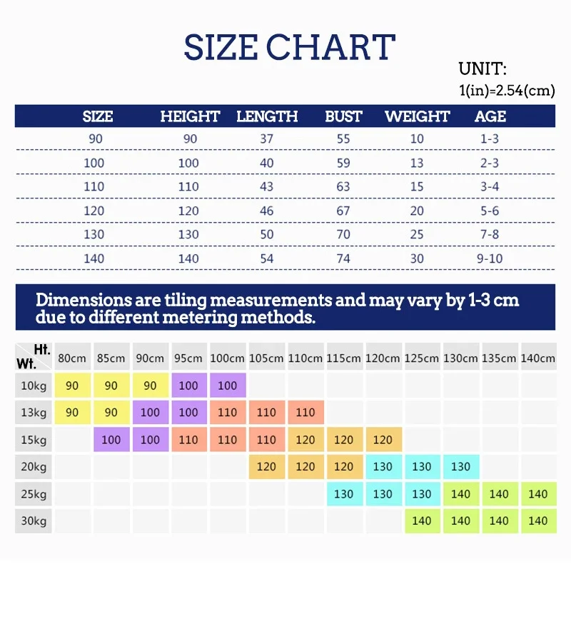 Size90 100 110 120 130 140 cm Height
