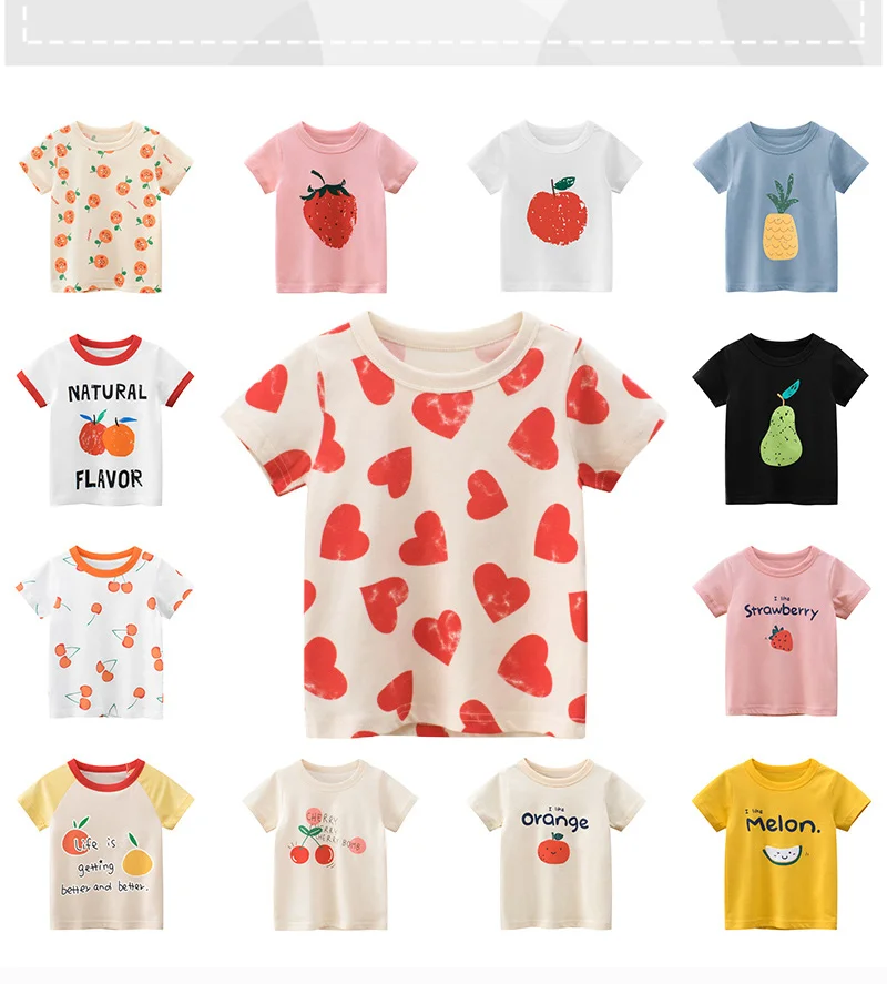 Детская одежда, 2021, летняя хлопковая Футболка с принтом фруктов, ...
