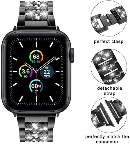 【❤Привлекательный дизайн: блестящий дизайн с кристаллами для apple watch позволяет легко получать комплименты.【❤Легко регулируется: В комплект входит средство для изменения размера, вы можете легко удалить дополнительные ссылки для apple watch band, чтобы идеально подогнать запястье. Пожалуйста, сделайте это после просмотра инструкции.【❤Совместимые часы: Bling bands совместимы с apple watch band 38 мм 40 мм SE/Series 6/Series 5/Series 4/Series 3/Series 2/Series 1, подходит для запястья Размер 5,7-6,8 дюймов.【❤Идеально подходит для ежедневного использования, праздничных вечеринок, концертов и очень подходящих для использования в качестве подарков на свадьбу, день рождения, День Святого Валентина, День матери, Рождество, День благодарения и т. д.【❤Комплектация: Содержимое упаковки: одна Высококачественная лента для apple Watches, одно средство для изменения размера.