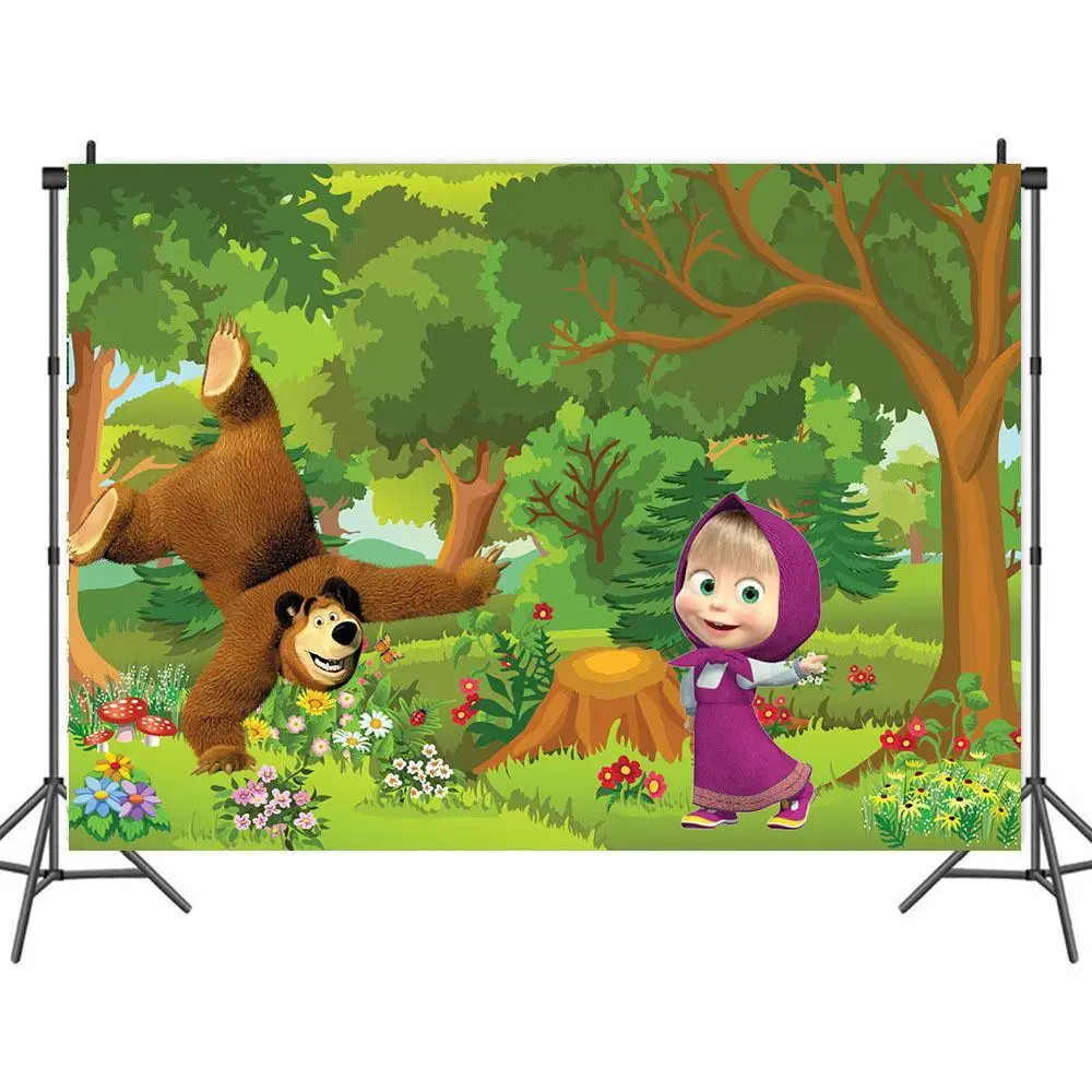 Цифровой фон для фотографий с изображением весны и медведя леса
