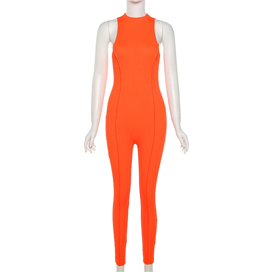 Женский комбинезон без рукавов, однотонный Облегающий комбинезон в ...