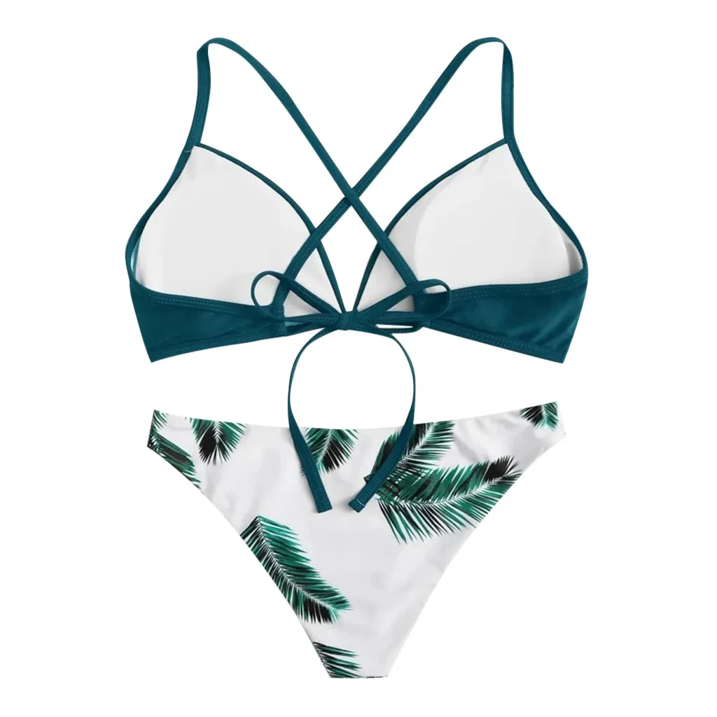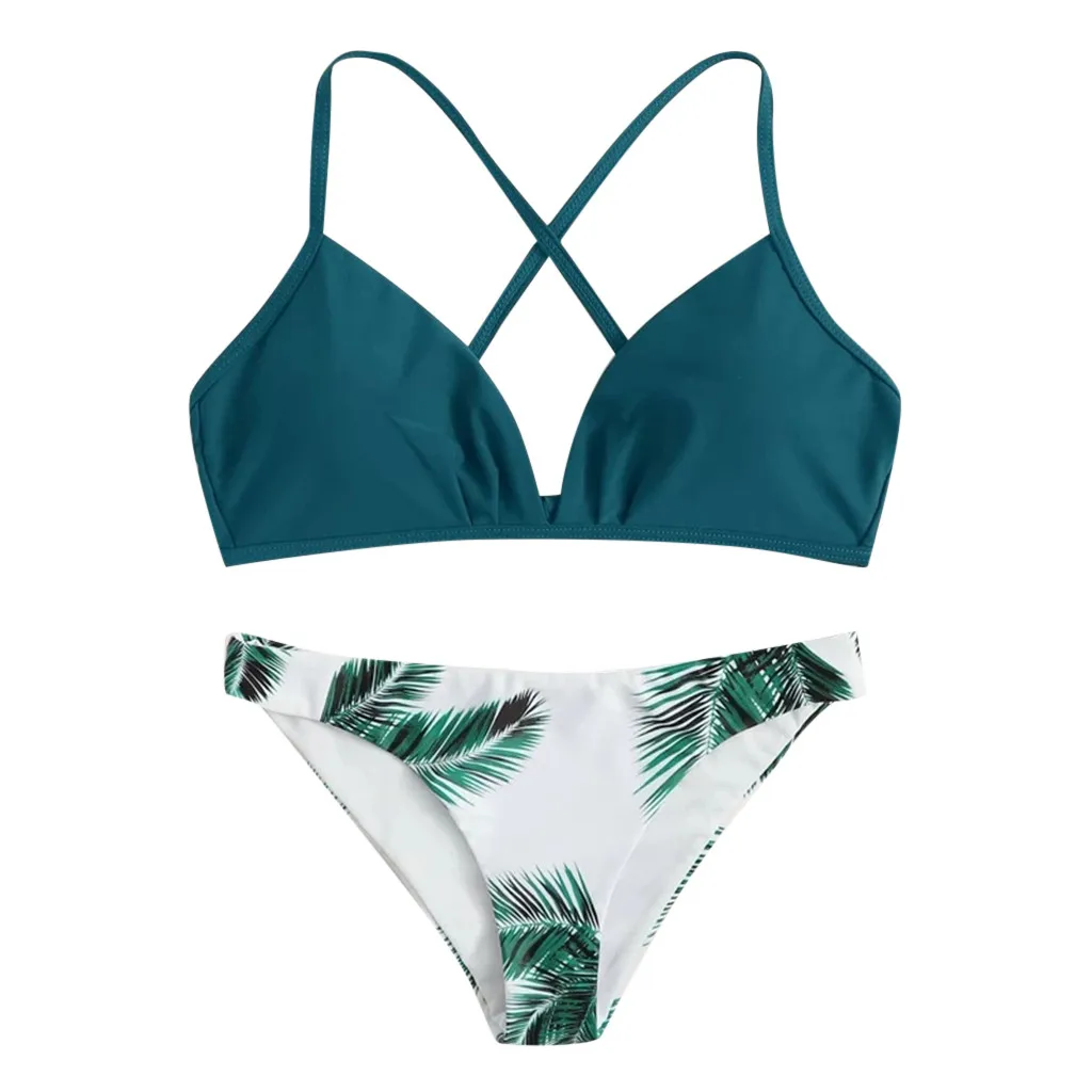 Бикини женские купальники с принтом листьев случайный комплект бикини пуш-ап купальник пляжная одежда мягкие летние женские купальники