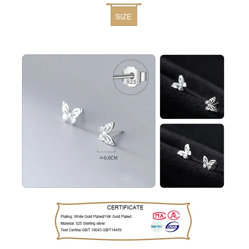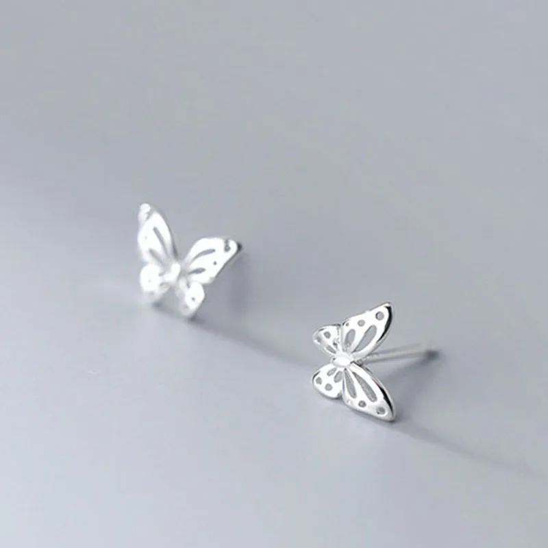 Серьги-гвоздики женские из серебра 925 пробы с бабочками и фианитами