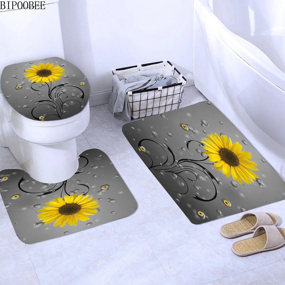 Набор тканевых занавесок для душа с желтыми цветами, Подсолнухи, декор для ванной комнаты, крышка для туалета, коврик, нескользящий ковер, занавески для ванной с крючками