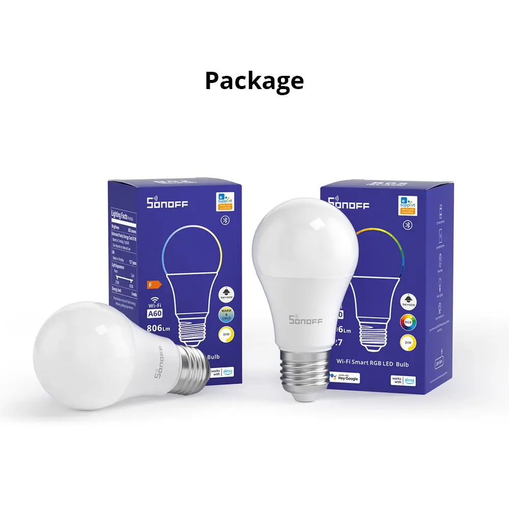 Умная Светодиодная лампа SONOFF WiFi с диапазоном цветовой температуры от 2700 к до 6500 К и номинальной яркостью 806 люминесценции, эквивалентной 9 Вт. Он имеет цоколь E26/E27 и подойдет к любому стандартному гнезду. И он совместим с Google Assistant, Amazon Alexa, вы можете управлять лампами через vioce.