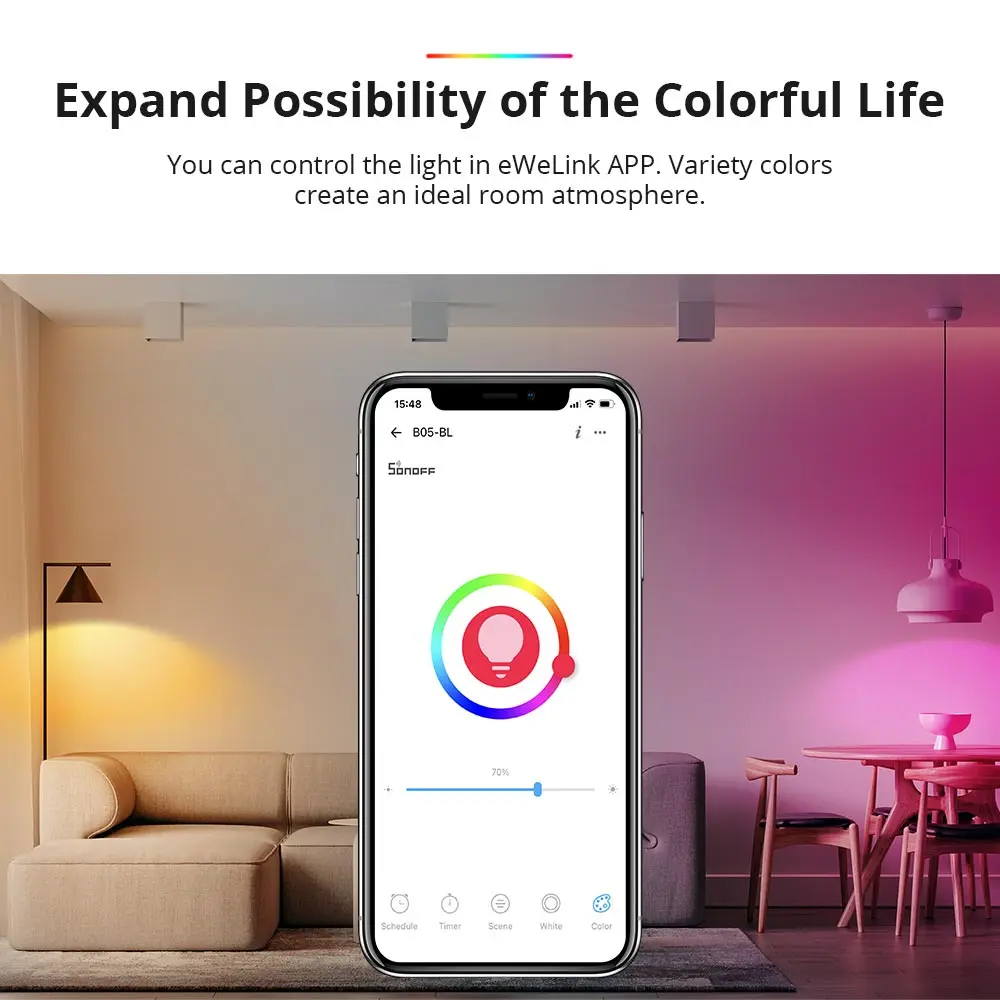 SONOFF B02B05-BL WiFi умный светильник, лампа E26 E27 RGB, светодиодная лампа, теплый белый, цветной, с регулируемой яркостью, голосовое управление для Alexa Google Home