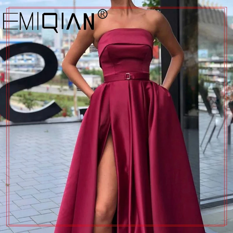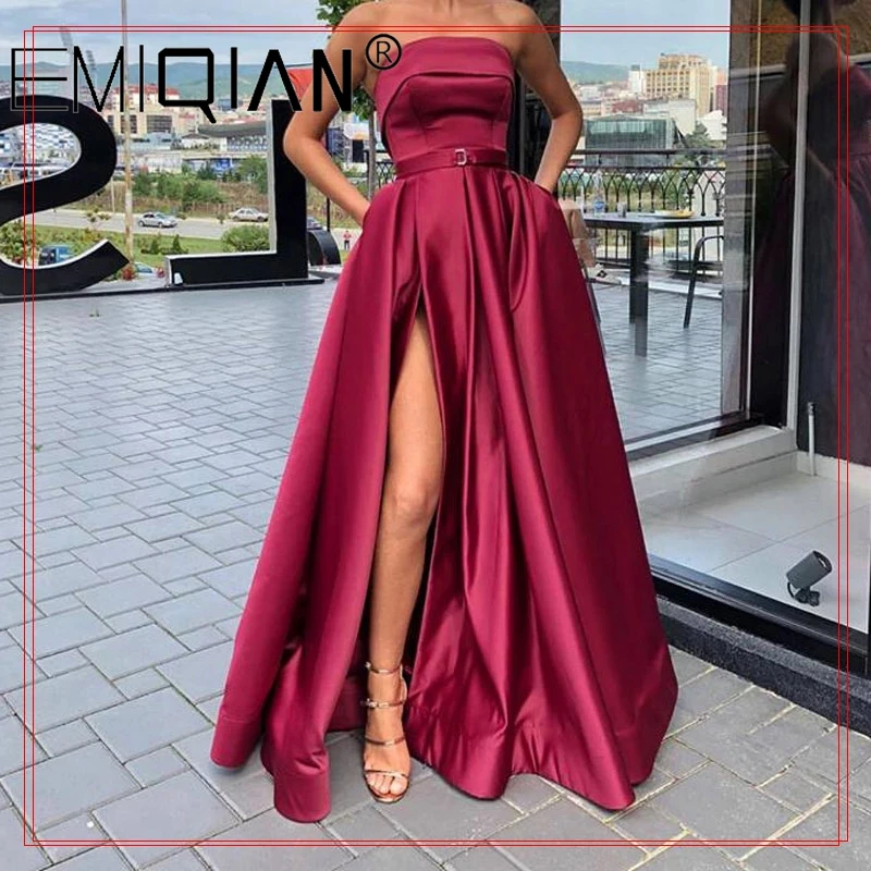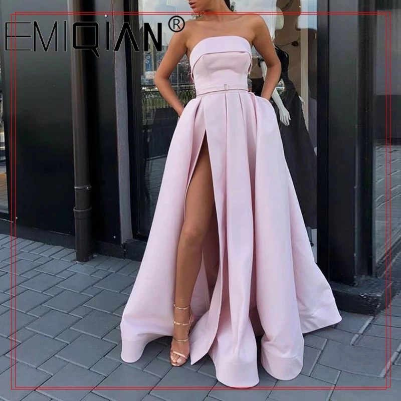 Женское атласное вечернее платье, розовое длинное платье без бретелек, для выпускного вечера