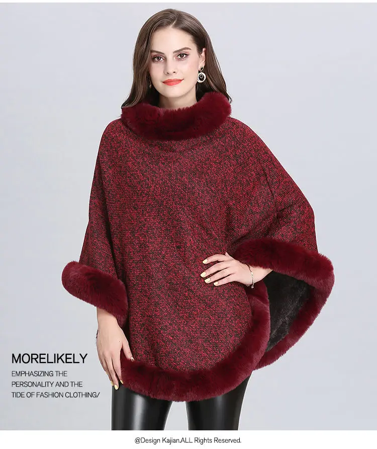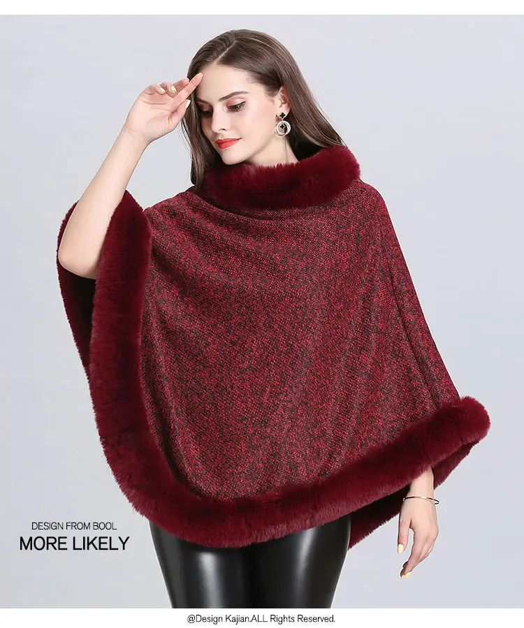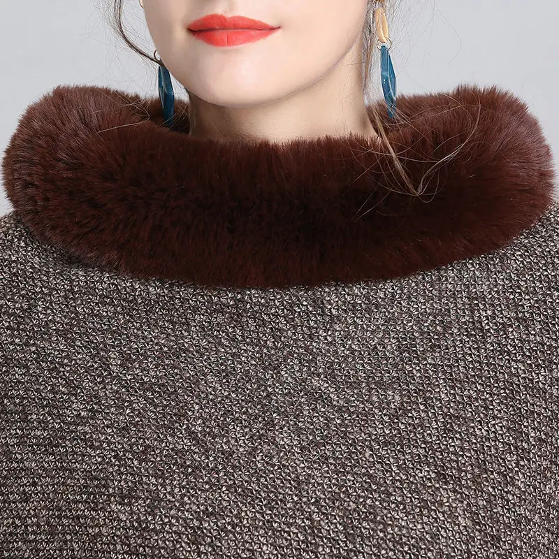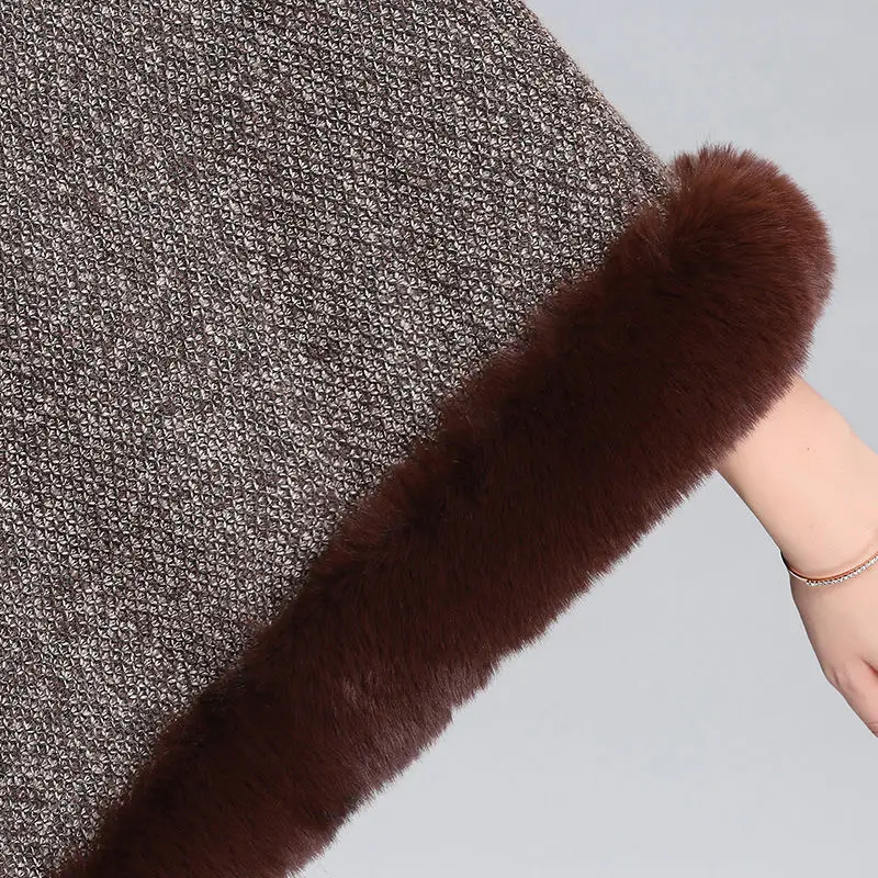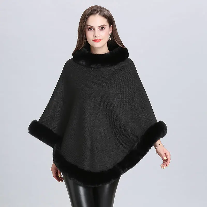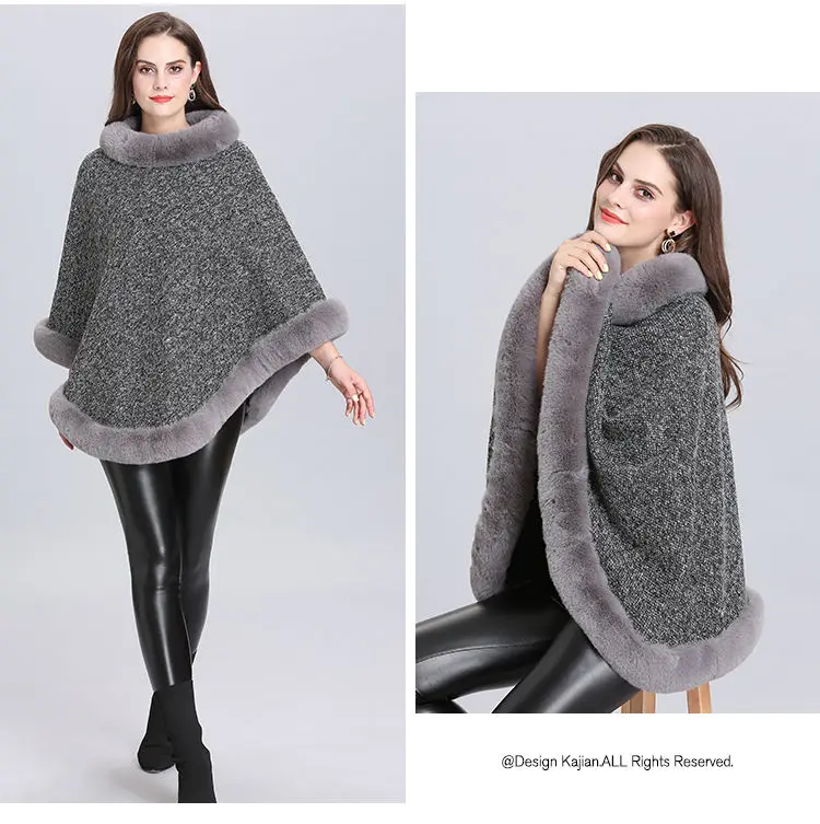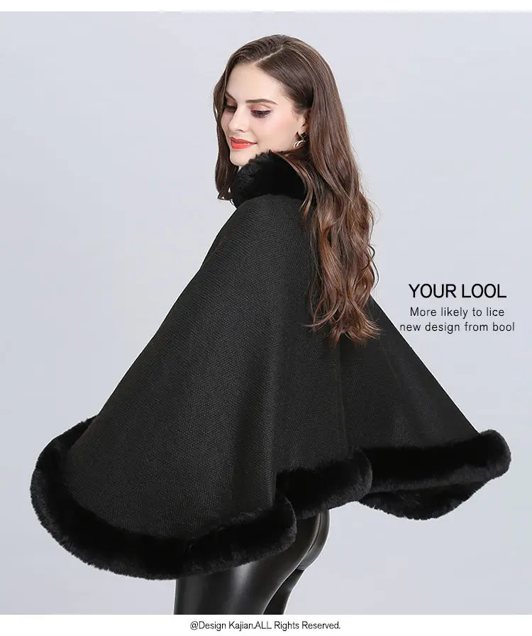 2021 топ с круглым вырезом и с мехом зимнее пальто для женщин новая женская мода шерсть кошки пончо и накидка Зимний плащ-накидка на женские куртки