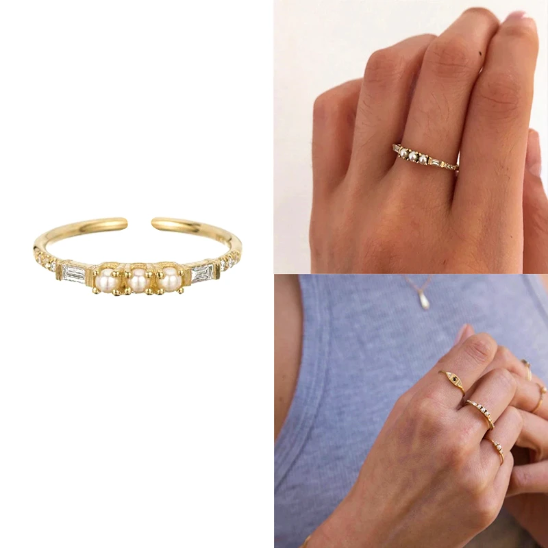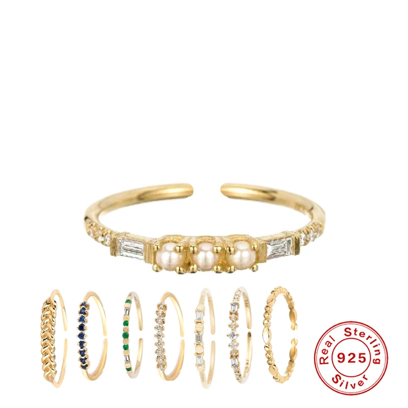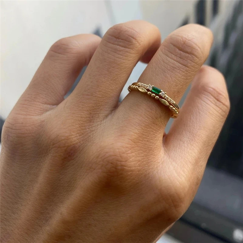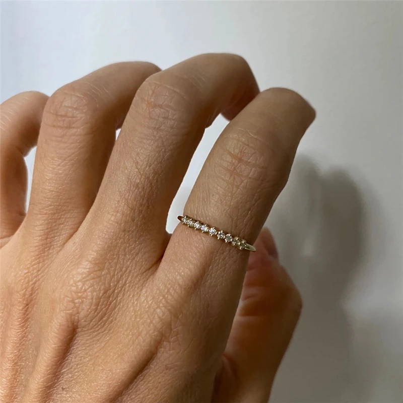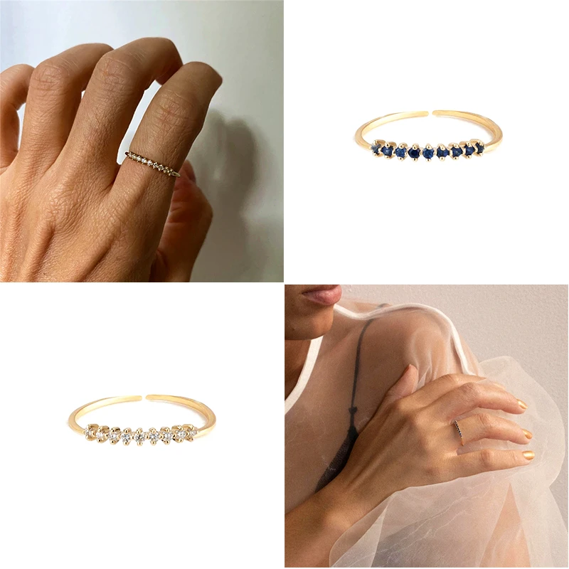 Women JewelryMinimalist Thin Circle Gem Rings Jewelry Carving S925