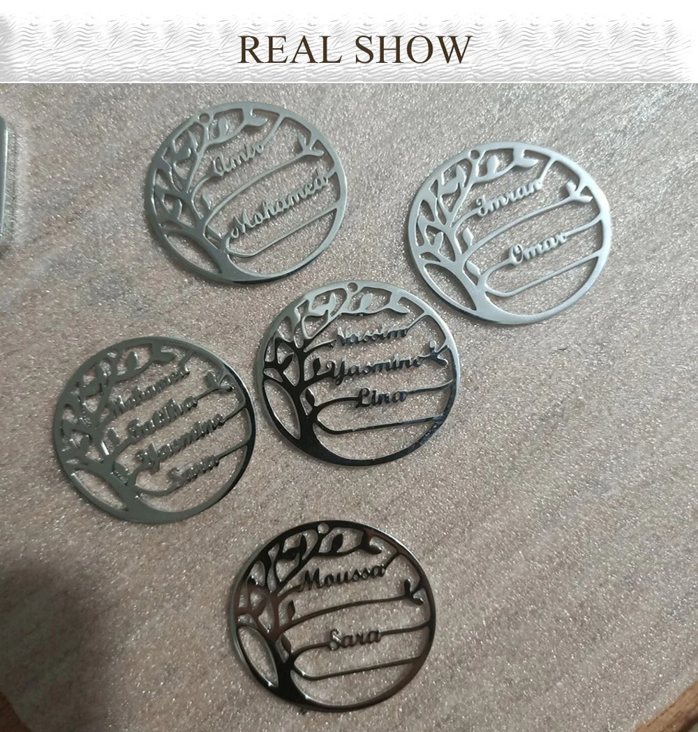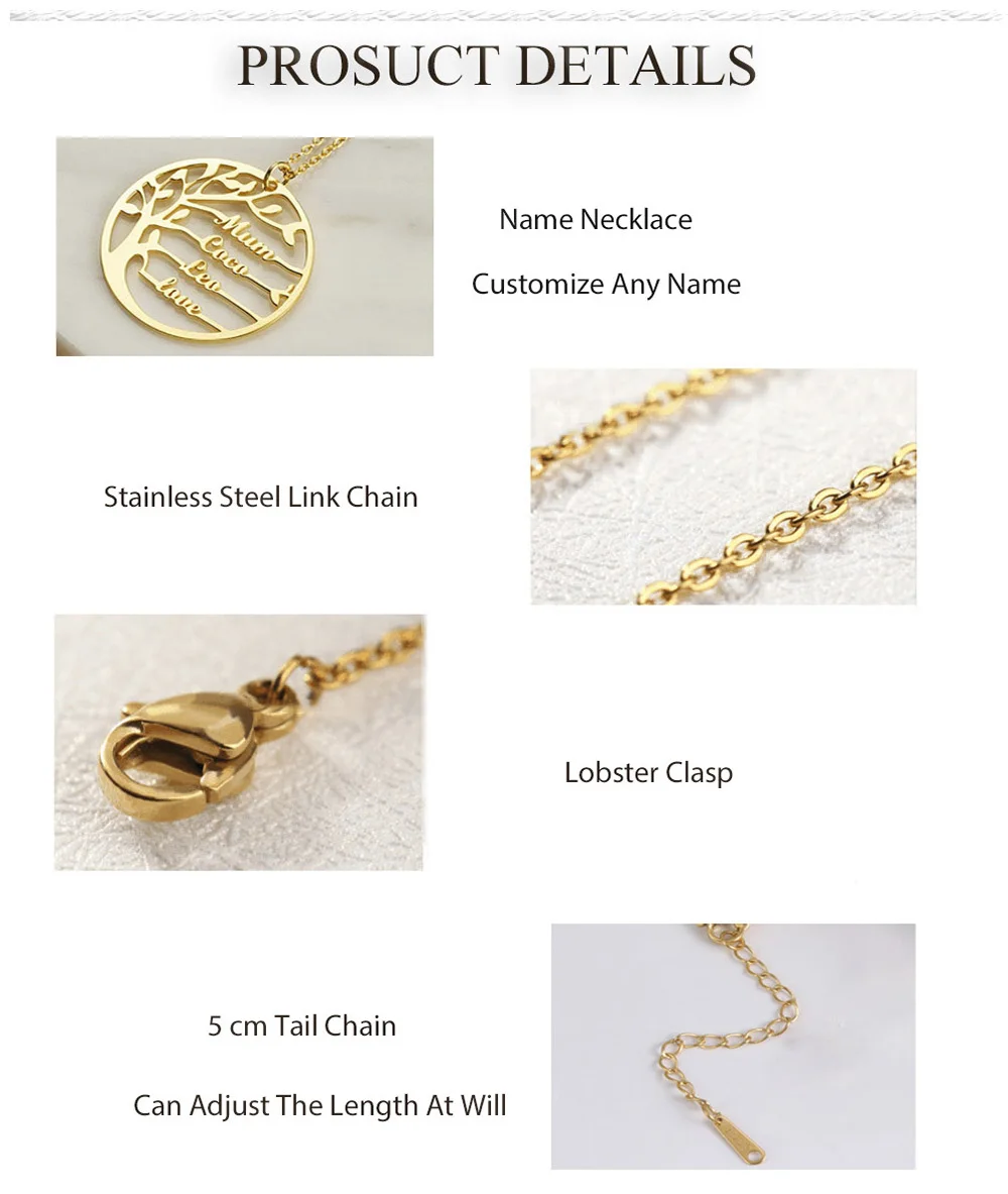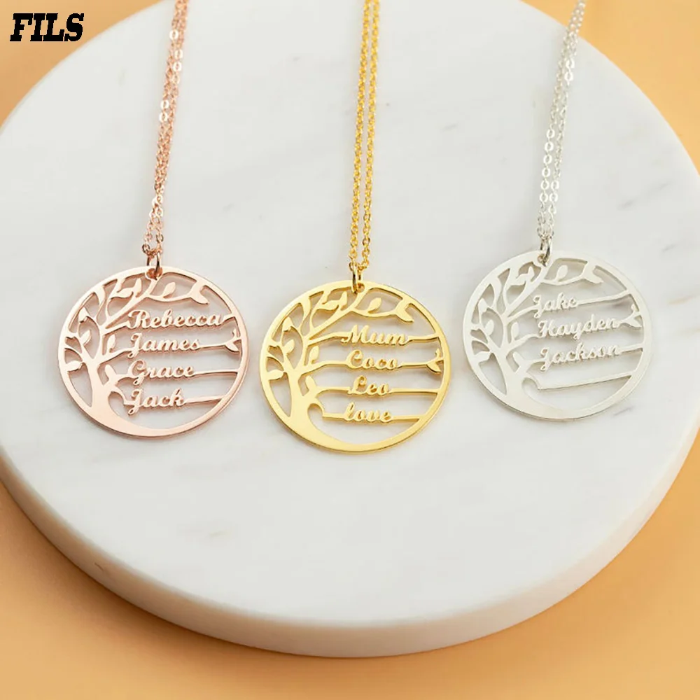 Ожерелье Древо жизни на заказ для женщин, семья из нержавеющей стали, 1-4 имени, круглые ожерелья с подвесками, ювелирные изделия, родители, рождественские подарки