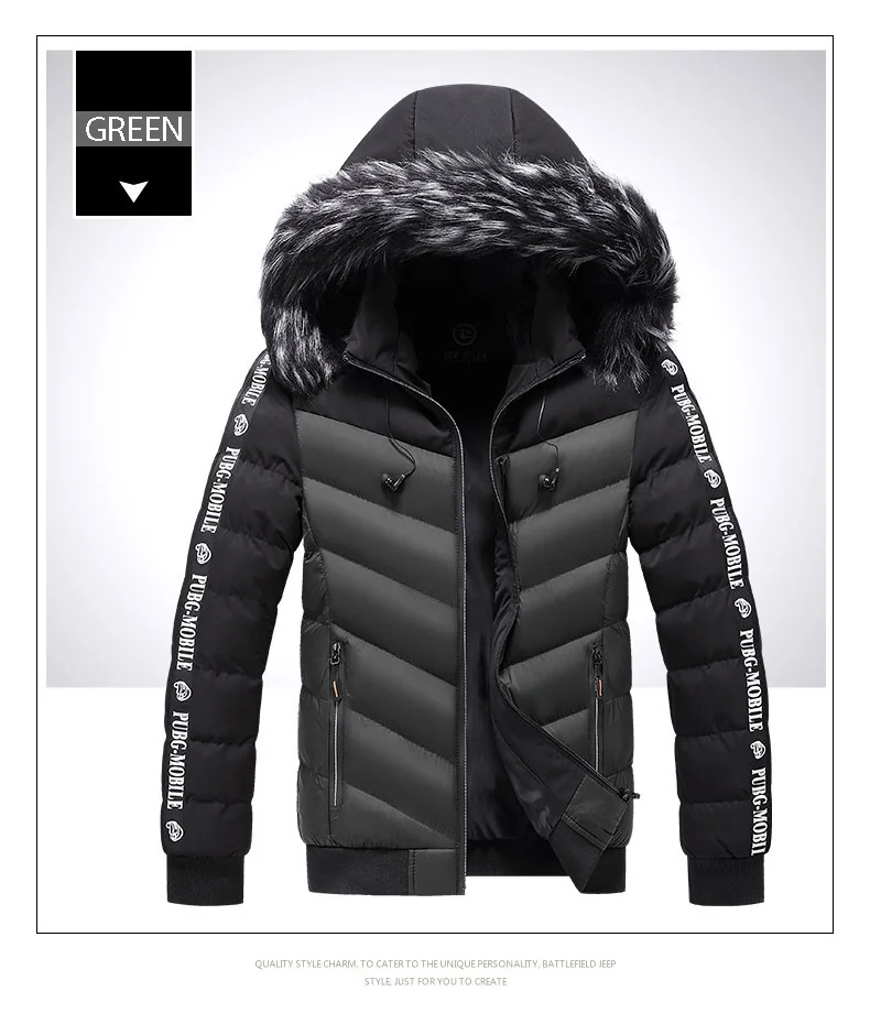 Парка мужская зимняя с меховым капюшоном, плотная ветровка, теплая ...