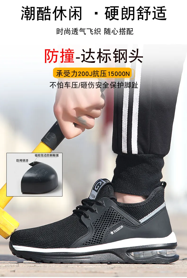 Дышащая мужская рабочая обувь, защитная обувь со стальным носком, Мужская непробиваемая обувь, рабочие кроссовки с защитой от проколов, Мужская защитная обувь