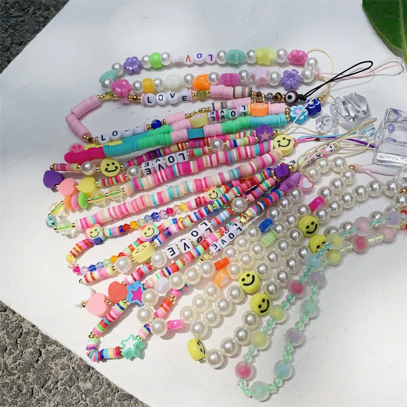Новинка 2021, ремешок ручной работы для телефона, цветной ремешок с улыбкой и жемчугом, Мягкая Керамическая веревка для телефона, Женский висячий шнур