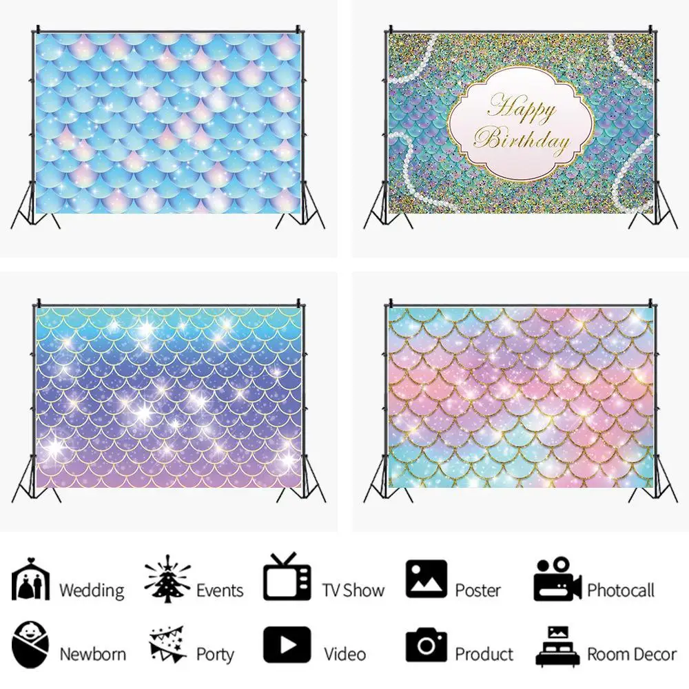 Рыбья чешуя Русалки принцессы фон с подводным миром для счастливых День рождения Baby Shower костюмированная фотография фон