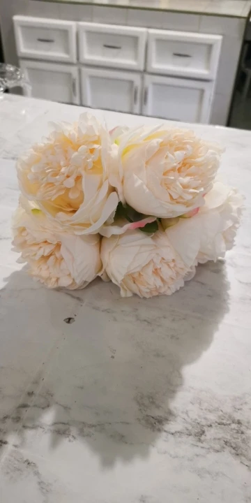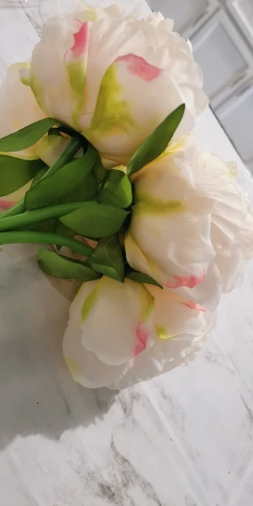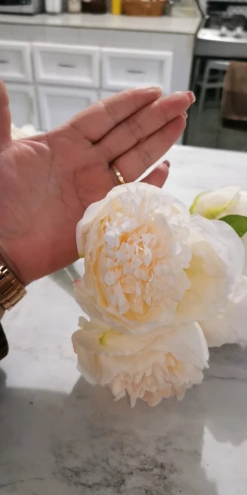 Они красивые, но у них есть лепестки розового цвета, и это не видно на фотографии поставщика. Они хорошего размера, я думаю, что я удалю эти лепестки розового цвета, и я буду использовать их. Посмотрите размер почти такой же, как моя рука