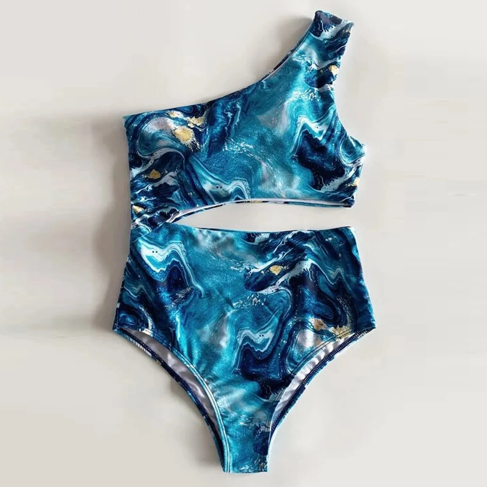 Женский слитный купальник с принтом тай-дай, купальник на одно плечо, женский купальник, монокини с эффектом пуш-ап, пляжная одежда # T1P