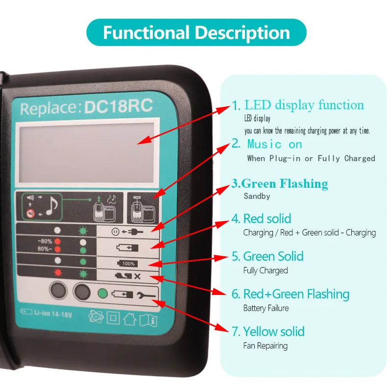 Suitable Power Tools Models:For Makita 18V Li-ion Cordless Power Tools