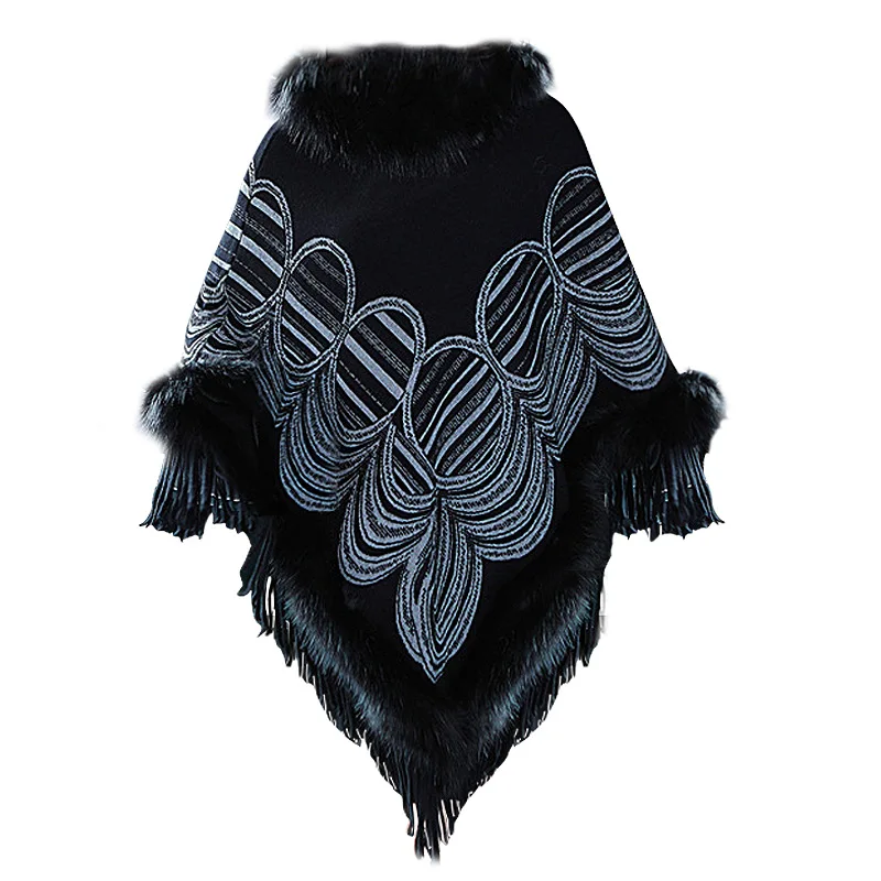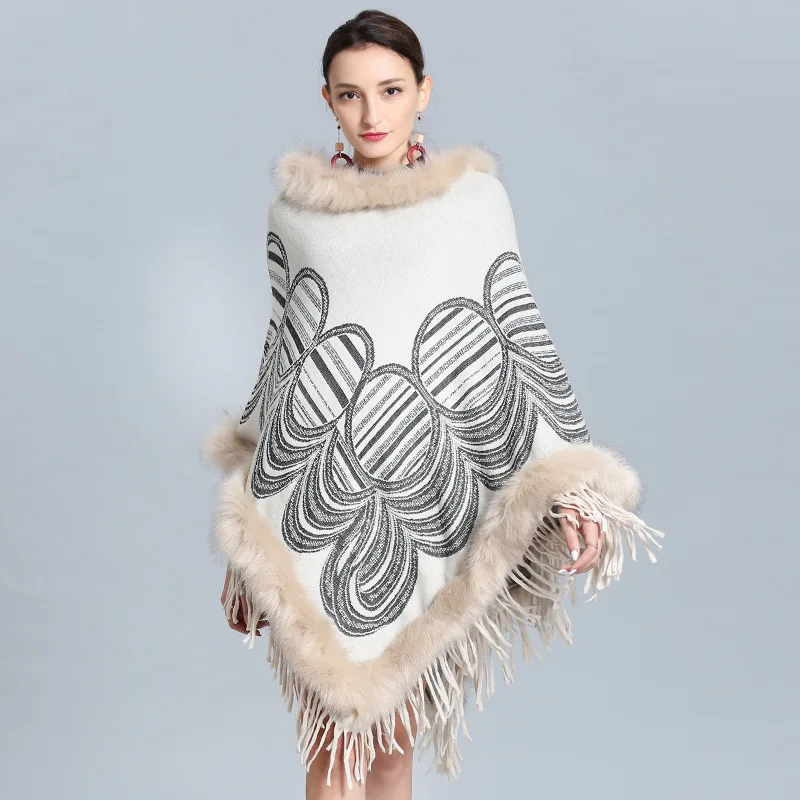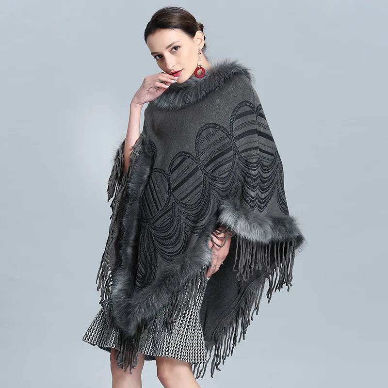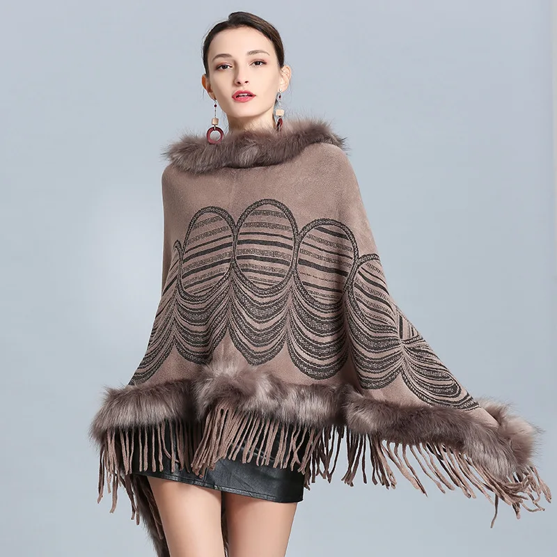 KelochДля женщин плащ пальто из искусственного пончо с мехом лисы с капюшоном меховая шапка пуловер справиться Для женщин длинные Накидки 2019 зимнее пальто с красными пончо для Для женщин