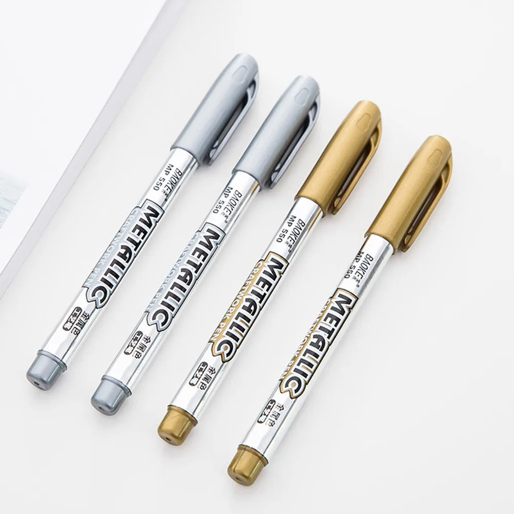 Ручки маркер с перманентной краской металлические, водонепроницаемые, золотые и серебряные, для рисования, товары для учеников, маркер ручка для рукоделия