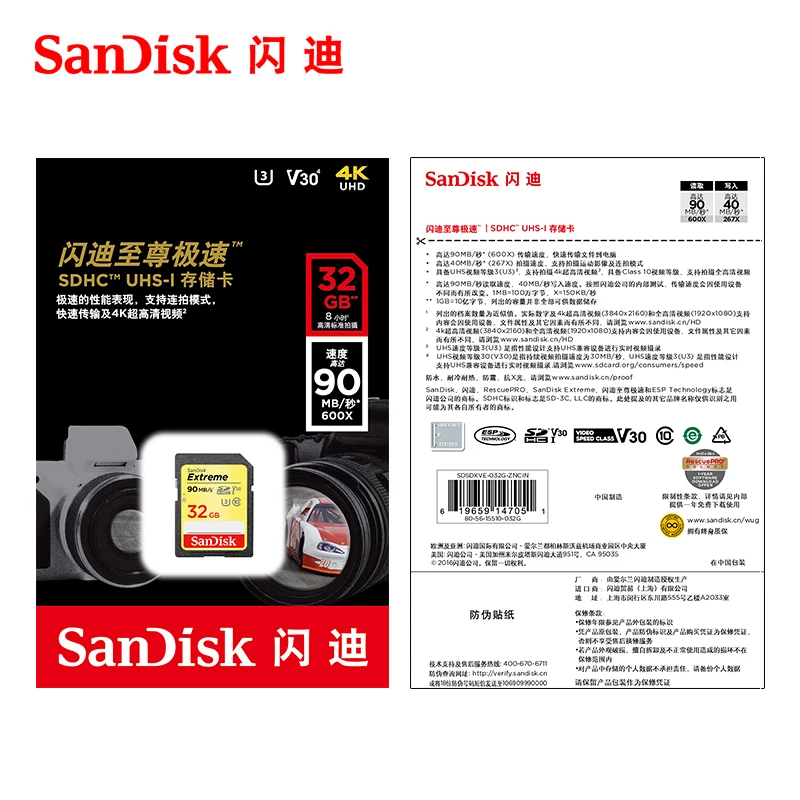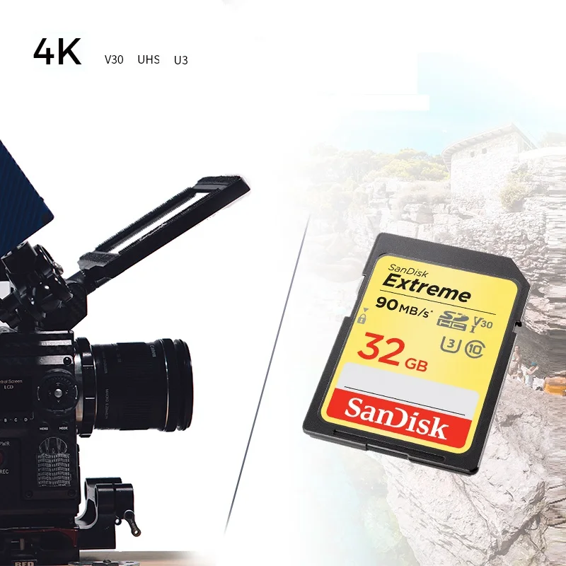 100% двойной флеш-накопитель SanDisk Extreme SD карта SDHCSDXC 256 ГБ 128 Гб 64 Гб оперативной памяти, 32 Гб встроенной памяти, XVE microSD UHS-I памяти TF 90 МБс. Class10 U3 для Камера V30 4K
