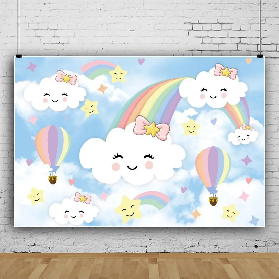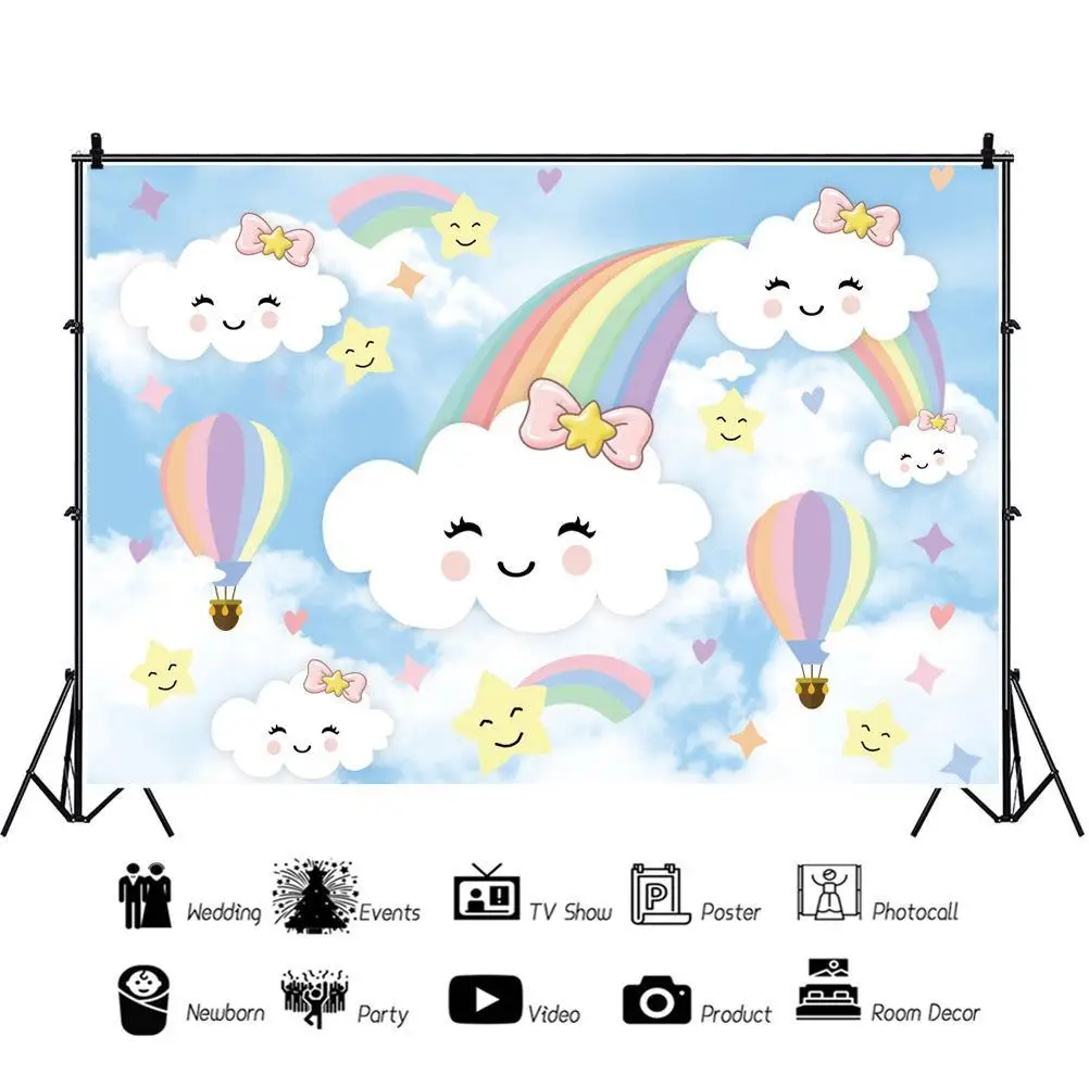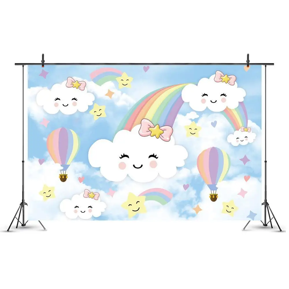 Фотофон для дня рождения с изображением голубого неба и радуги