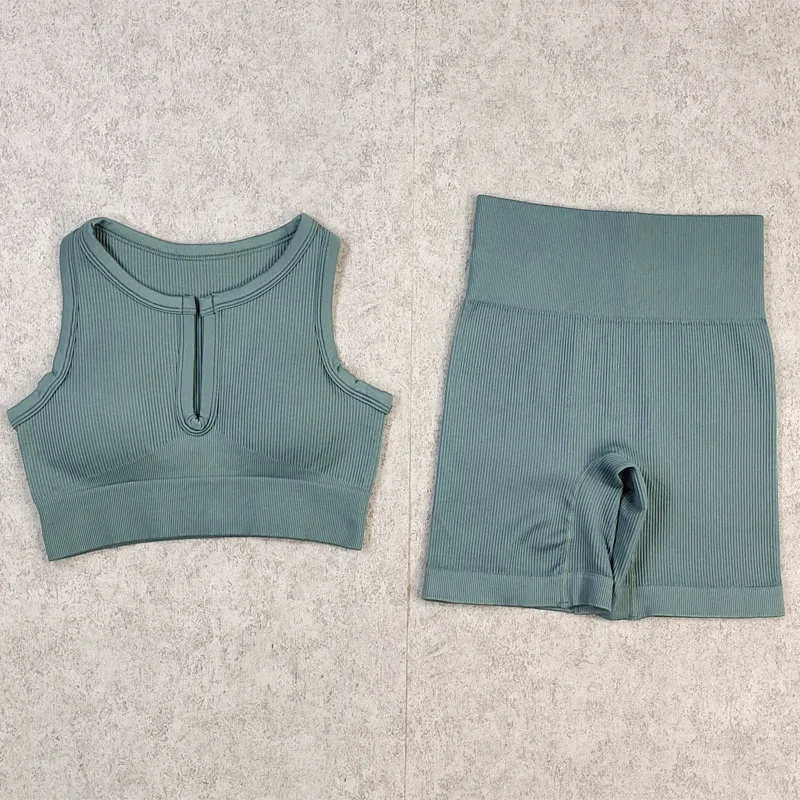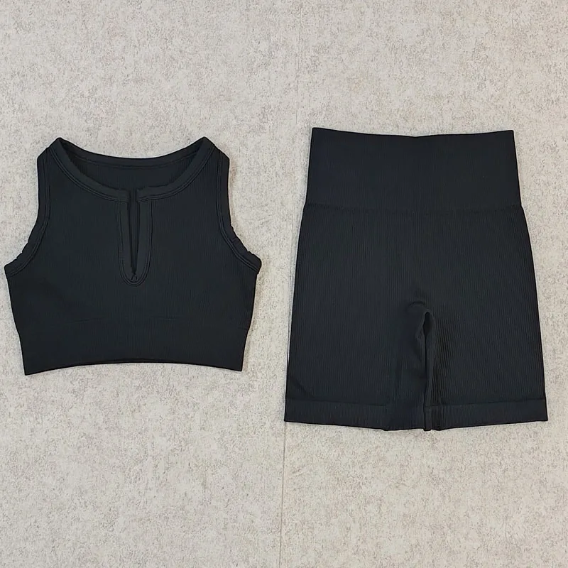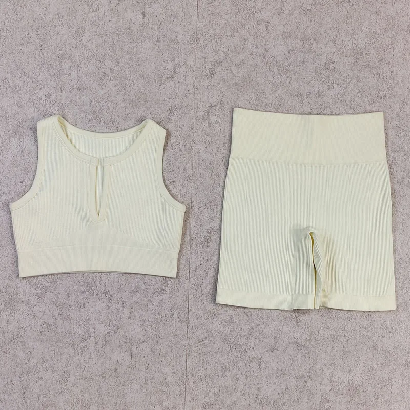 V-образный вырез, ребристые комплекты для йоги, шорты, одежда для тренировок, женский костюм, бесшовные спортивные шорты, комплект одежды для тренажерного зала
