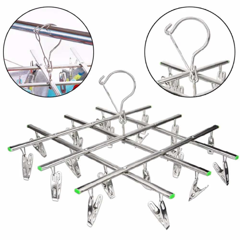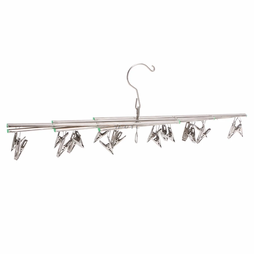 Ветрозащитная вешалка для белья, носков, перчаток, одежды, складная подвесная стойка из нержавеющей стали, 20 прищепок, сушилки для улицы
