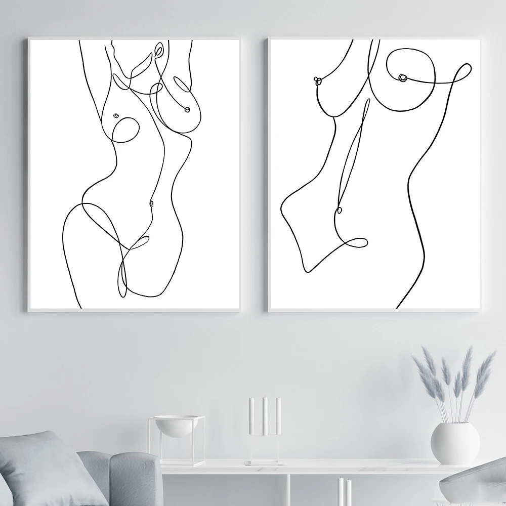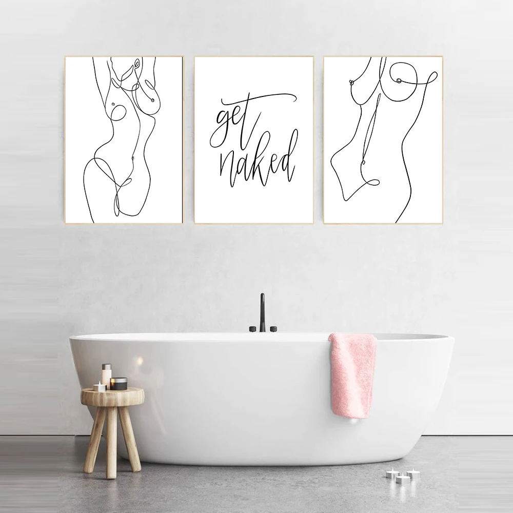Картина на холсте для ванной, постеры и принты в скандинавском минималистическом стиле, обнаженная женская линия, искусство, Настенная картина, украшение для душевой