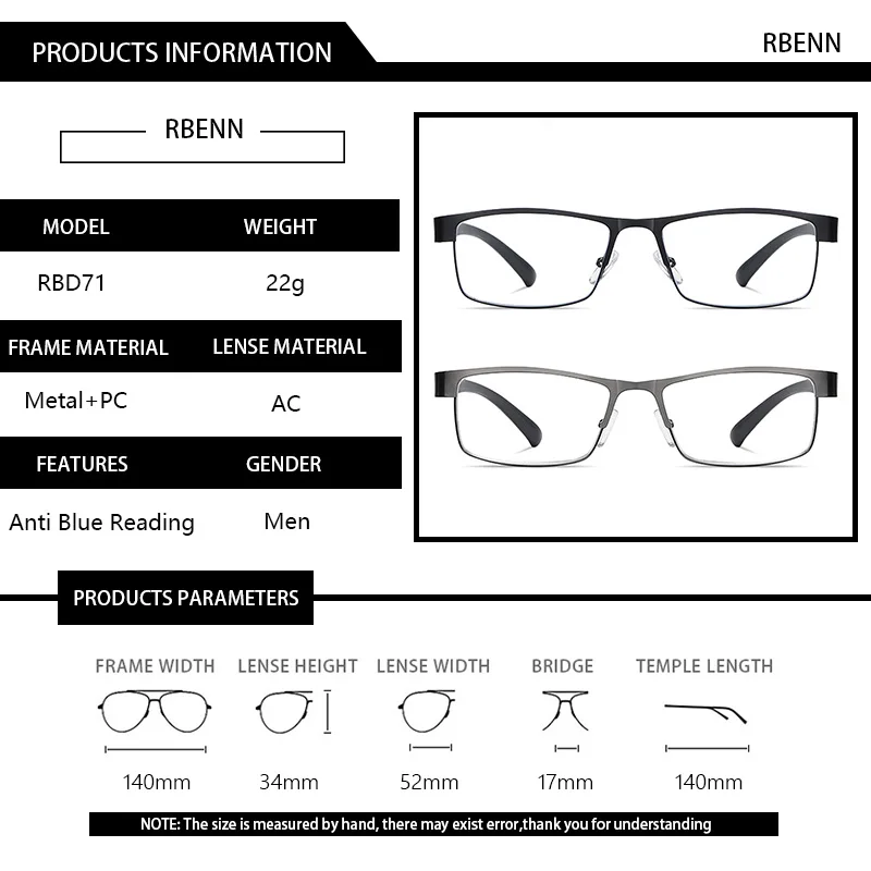 Очки для чтения RBENN + 1,75 мужские в металлической оправе, аксессуар для чтения при пресбиопии, с пружинными петлями, с защитой от сисветильник, 2 упаковки