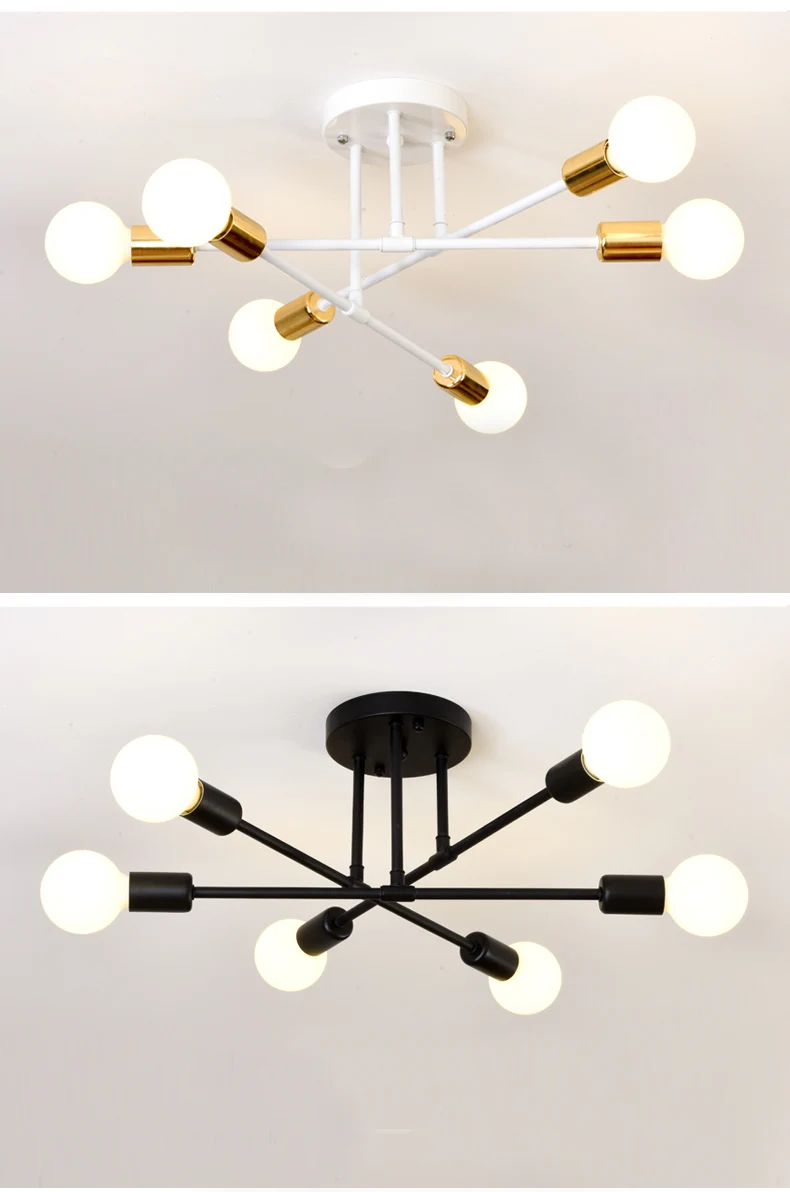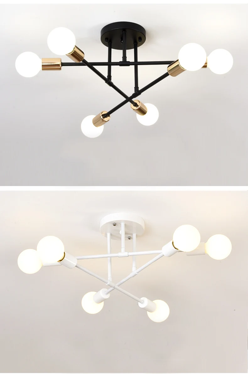 Винтажная потолочная лампа с цоколем E27, 68 насадок, черногобелого...