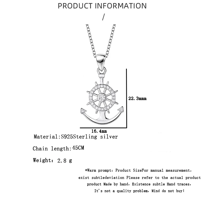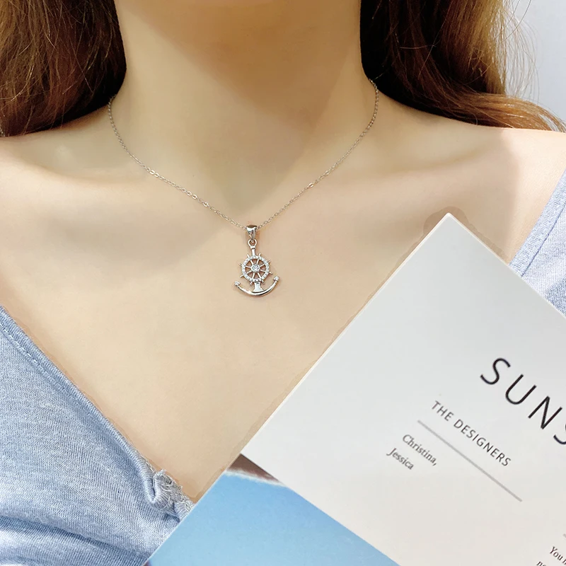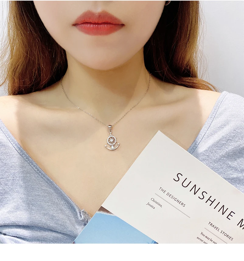 S925 Стерлинговое серебро ожерелье со штурвалом индивидуальность европейский и американский якорь ювелирные изделия подвеска цепочка до ключиц