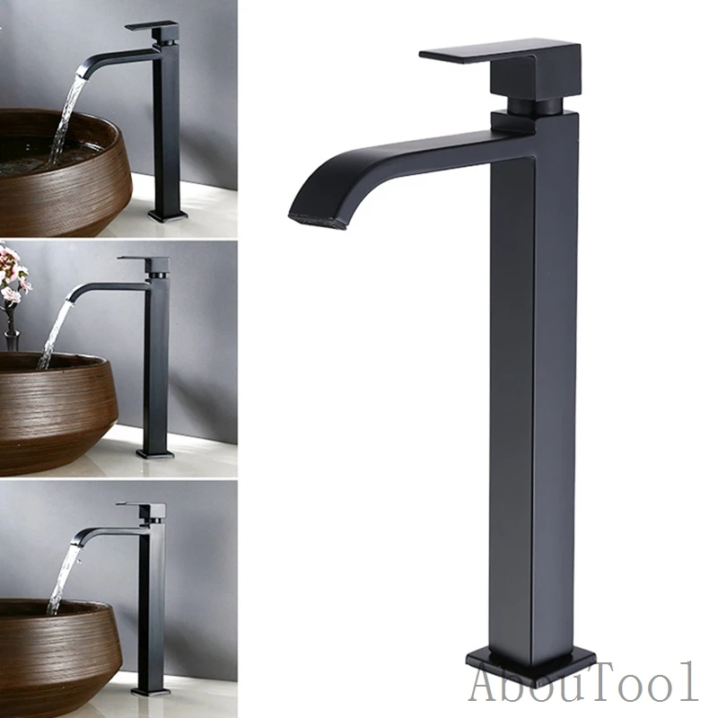 Смеситель-водопад черный металлический высокий смеситель для раковины кран для холодной воды Torneira из нержавеющей стали смеситель для ванной комнаты Смеситель для мойки дома