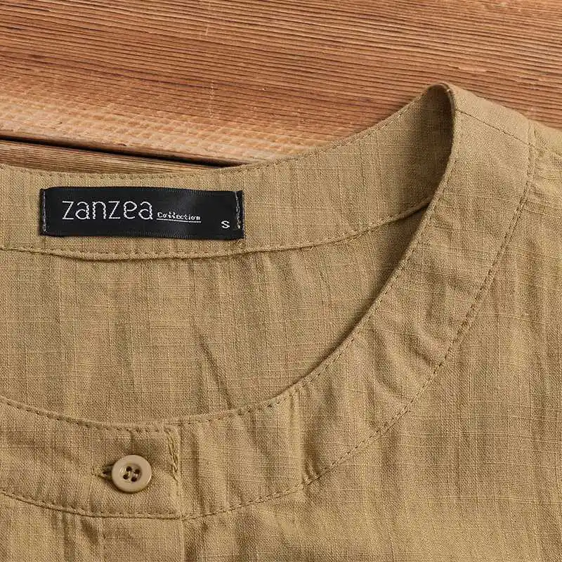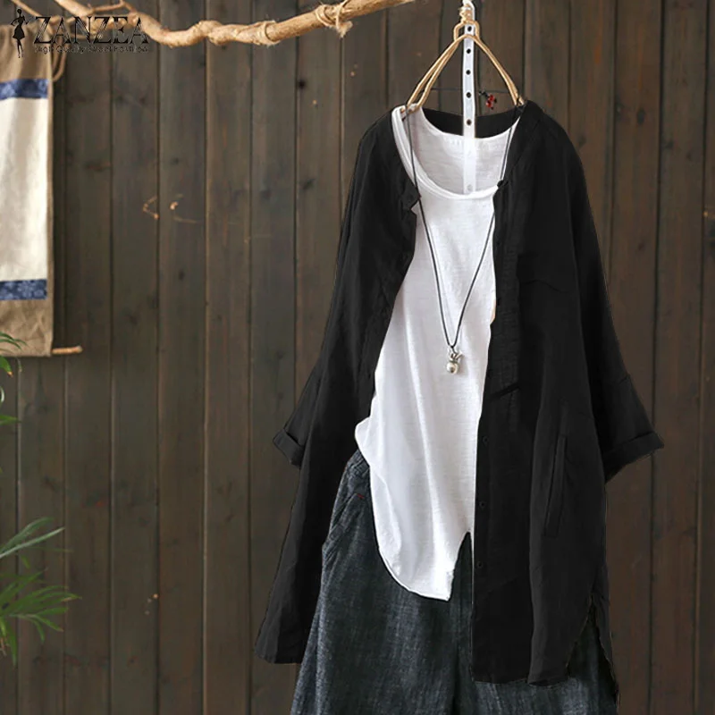 Женская туника, весенние Рубашки ZANZEA 2022, винтажные однотонные топы, повседневные кардиганы с длинным рукавом, женские блузы на пуговицах, рубашка