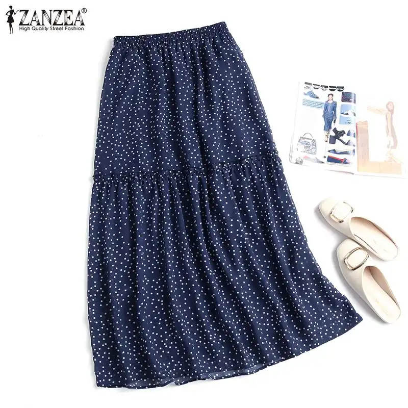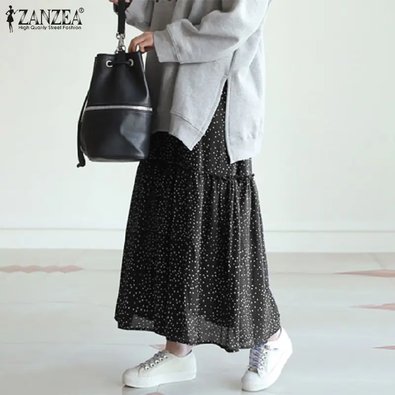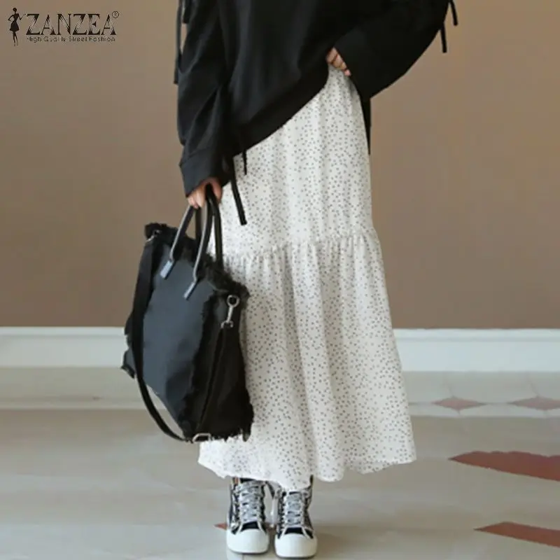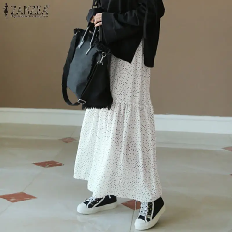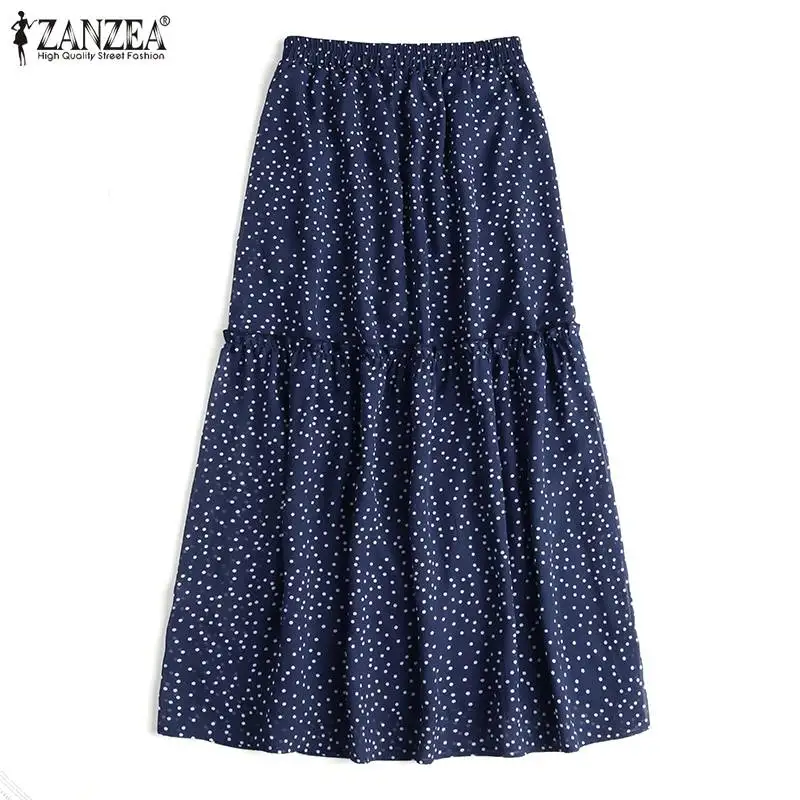 Юбка ZANZEA Женская Макси с принтом в богемный горошек, Повседневная элегантная Праздничная трапециевидная юбка с низом, лето 2021