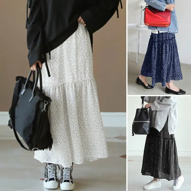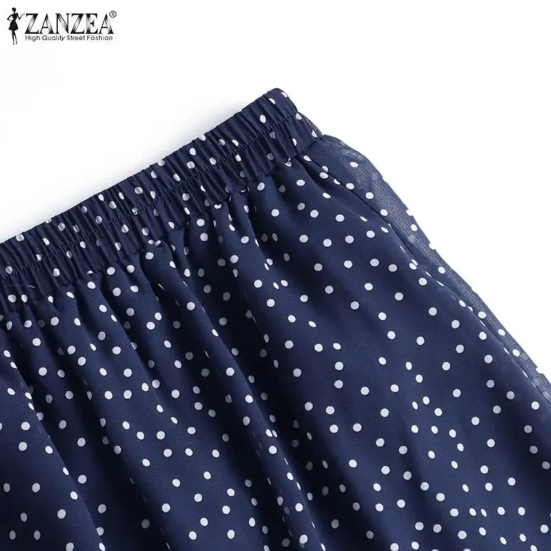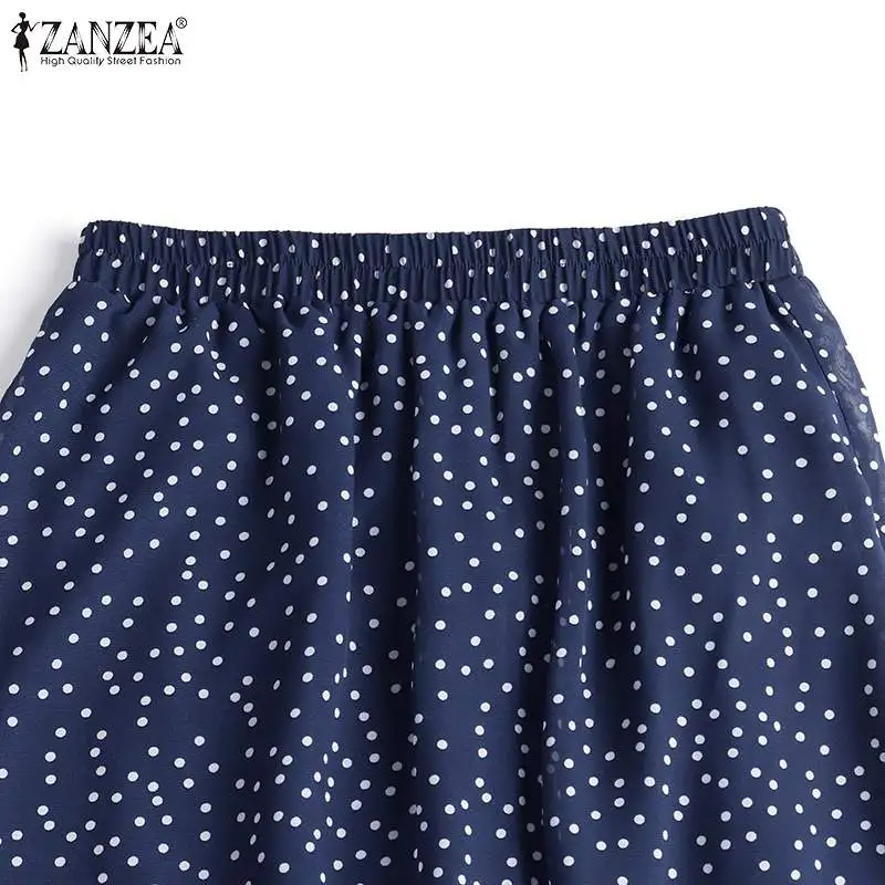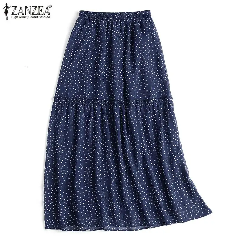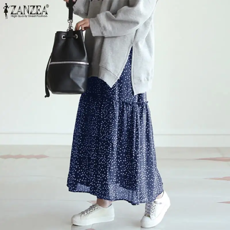 Юбка ZANZEA Женская Макси с принтом в богемный горошек, Повседневная элегантная Праздничная трапециевидная юбка с низом, лето 2021