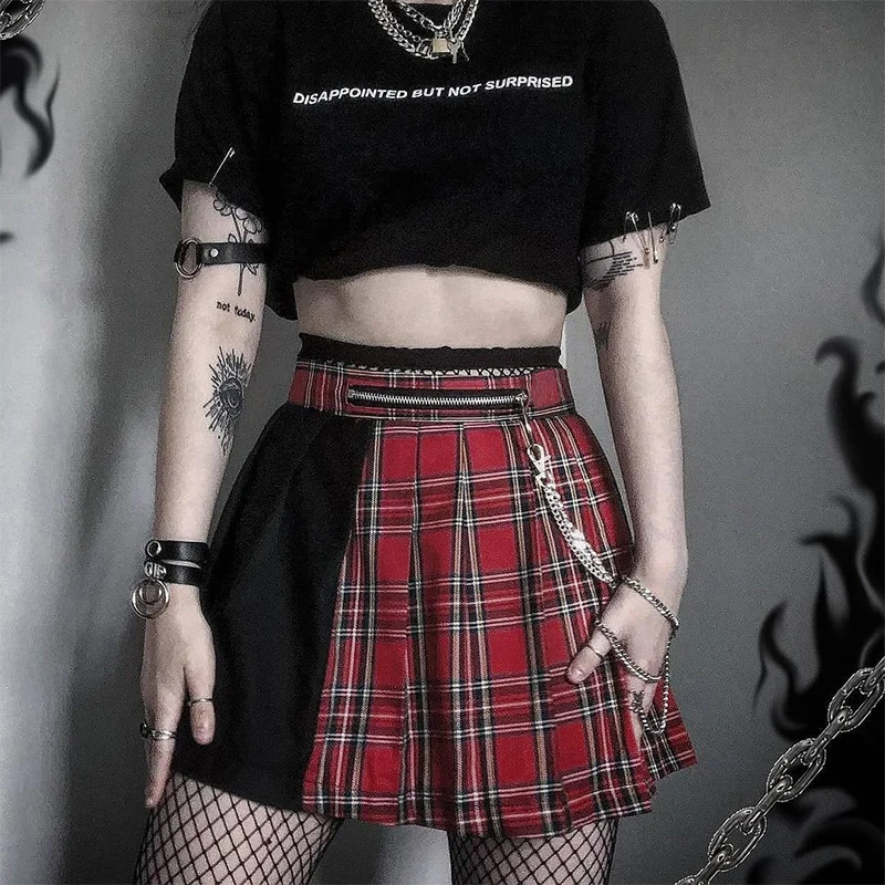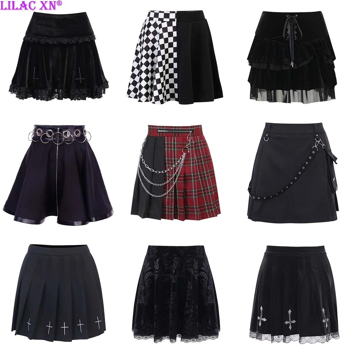 Клетчатая плиссированная мини-юбка Y2K в стиле Харадзюку, сексуальная черная теннисная юбка в стиле панк с завышенной талией для женщин, Готическая кавайная сказочная юбка