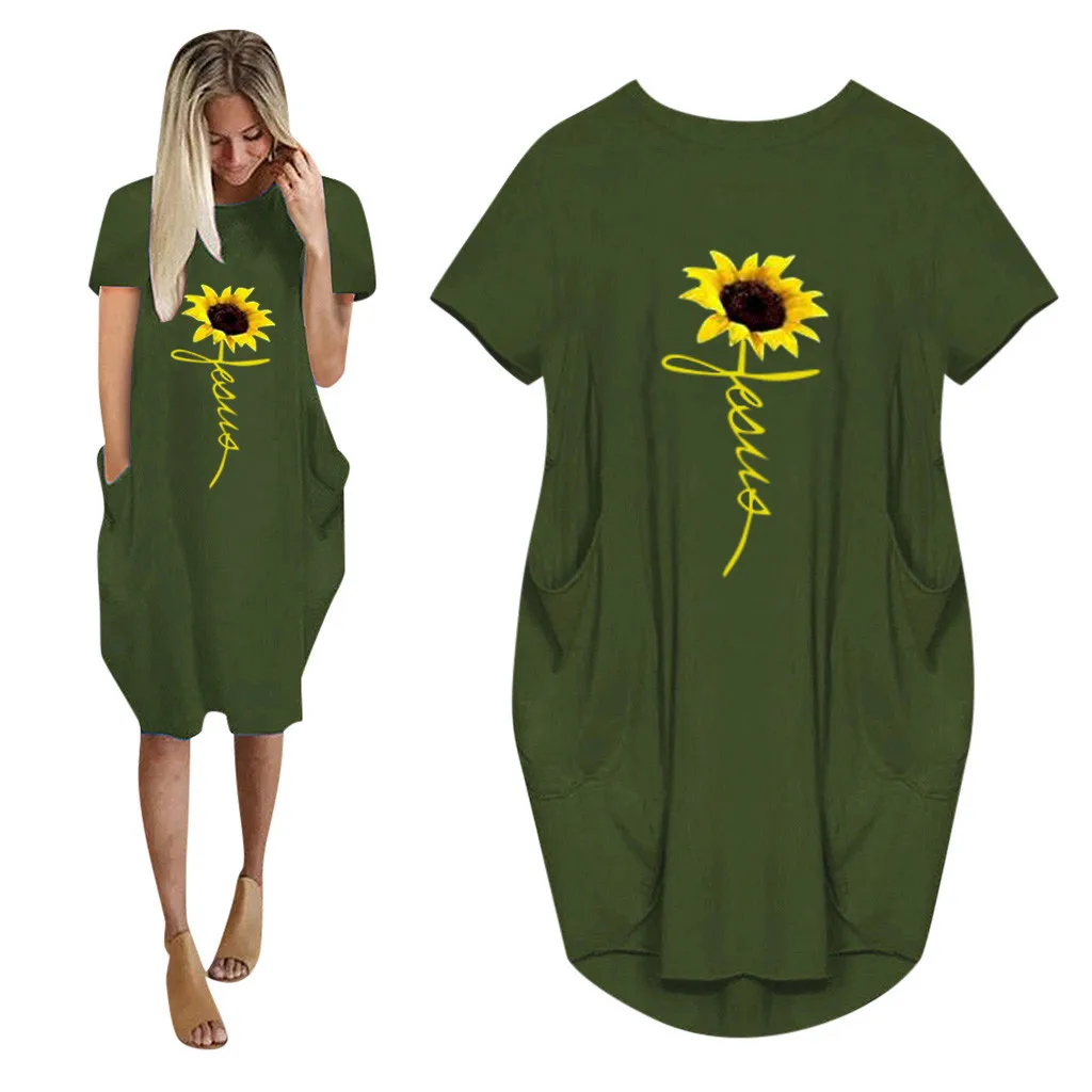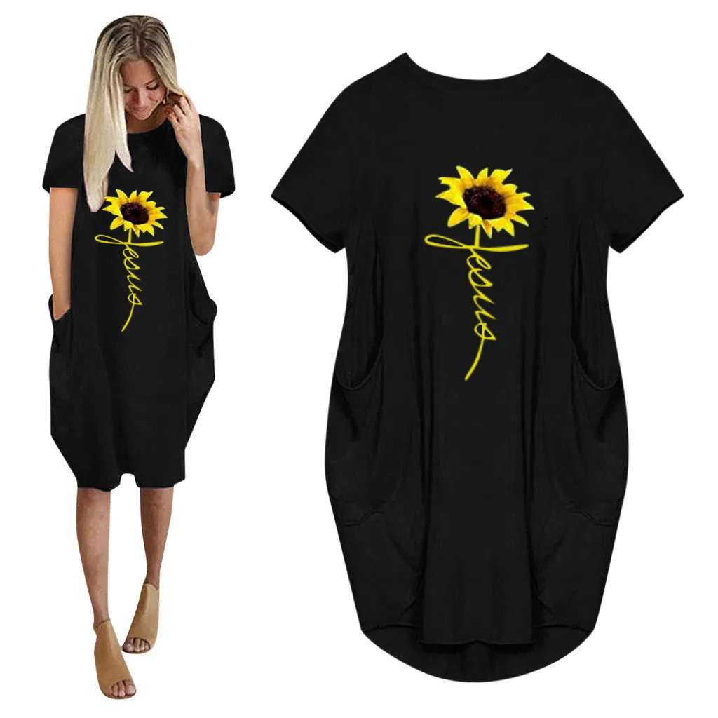 Женское платье средней длины, с принтом подсолнухов и карманами, Осеннее, повседневное, свободное, винтажное, для вечеринок, 5xl, размера плюс
