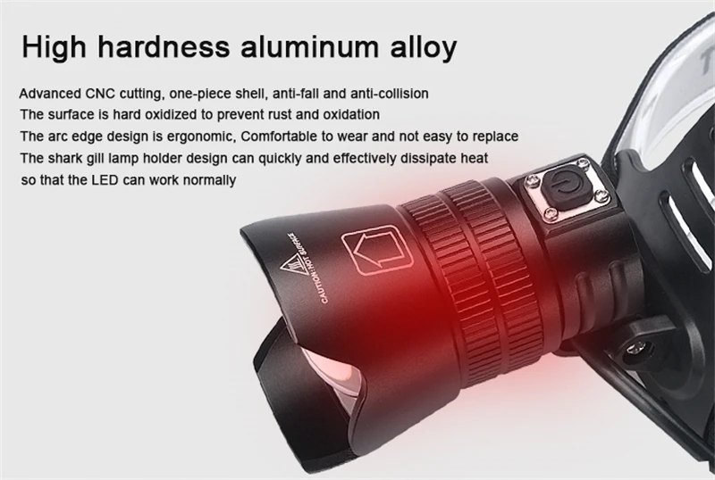 Посылка: Без аккумулятора: Без аккумулятора 3600 мАч: с аккумуляторами 18650 3*1200 мАч 7800 мАч:С аккумуляторами 18650 3*2600mah Параметры продукта: Модель продукта: XH100(9 ядра) /XHP160 (16 ядра) (Теоретический срок службы: 100000 часов) Тип переключателя: нажмите переключатель на головке лампы Режим работы: 3 режима: сильный светильник, слабый светильник и мигающий Светильник ing Цвет: белый светильник на держатель лампы, красный светильник на задней части батарейного отсека Водонепроницаемость: IPX5 (анти-drenching, анти-брызги) Рабочее напряжение: ≥ 3,7 V Материал изделия: алюминиевый сплав и АБС Метод зарядки: поддержка зарядки micro USB Режим масштабирования: телескопический зум Обработка поверхности: износостойкое анодирование Применимый аккумулятор: 3*18650 (опционально) Вес нетто продукта: 298 г Особенности: Сегментированный ток, легкое рассеивание тепла Большой объектив, Большая диафрагма, широкий диапазон освещения Функция ввода и вывода батарейного отсека, может использоваться как мобильный Банк питания, отсек для батарей с дисплеем питания, 4 светодиодный индикатор, каждый светодиодный индикатор с 25% дисплеем питания. Ремень для фар добавляет нескользящий ремень, который не скользит и удобен без давления Теплое напоминание:Эта модель оснащена защитой от тока. Если мощность батареи слишком низкая, она автоматически отключит питание, чтобы защитить батарею от слишком низкого заряда и не заряжается. В это время заряжайте его вовремя, и вы должны использовать 3 аккумулятора 18650 для источника питания. (Примечание: Пожалуйста, используйте 3 батареи с заостренной головкой, батареи с плоской головкой не могут быть использованы)