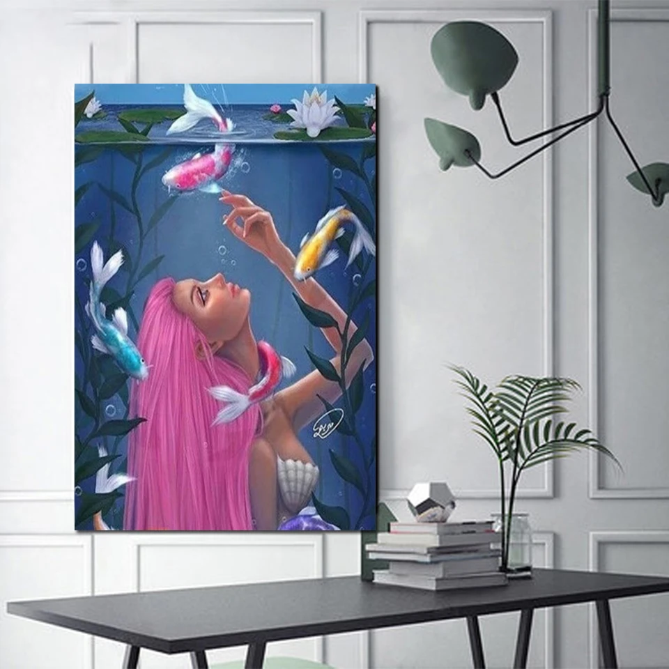 Водяная Фея Алмазная вышивка полная дрель квадратная круглая 5D алмазная картина кои рыба пейзаж мозаика рукоделие картины