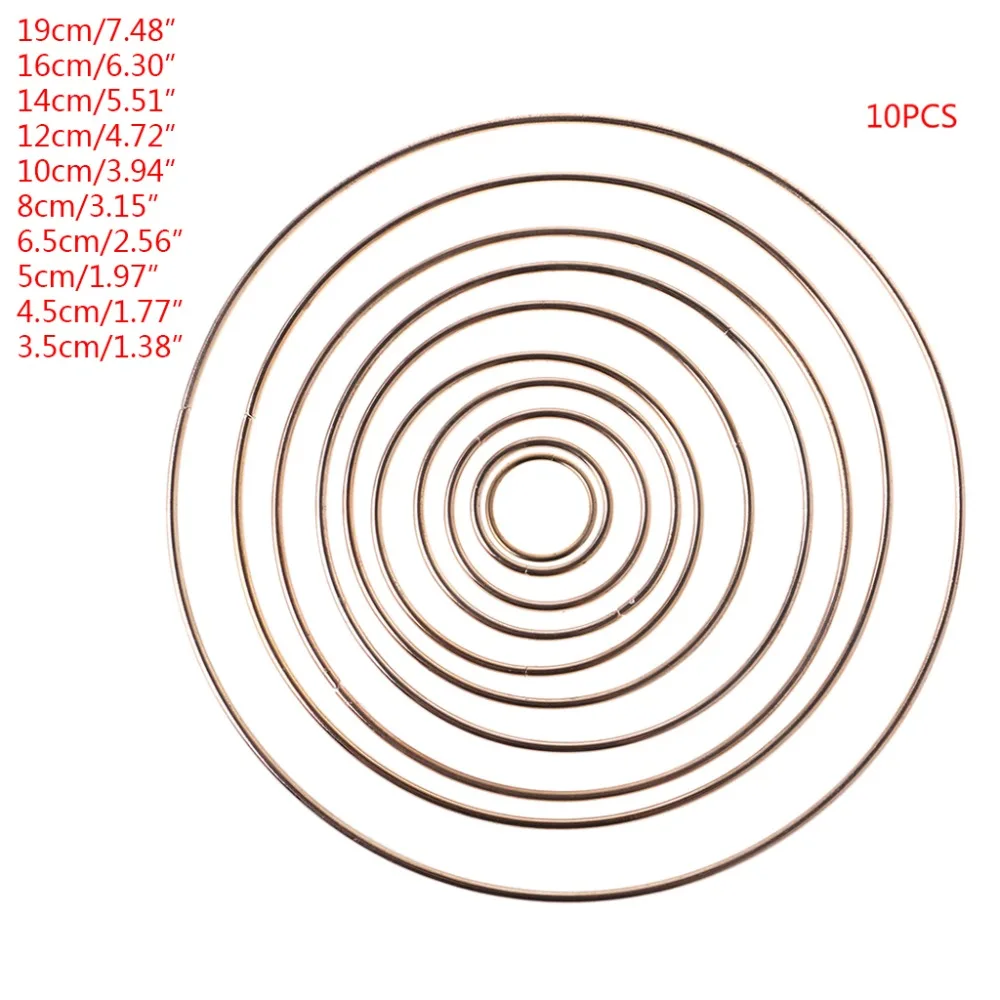 10 шт.компл. Золотой металлический Ловец снов кольцо Ловец снов макраме ручной работы обруч DIY аксессуары 35-190 мм 10 шт.