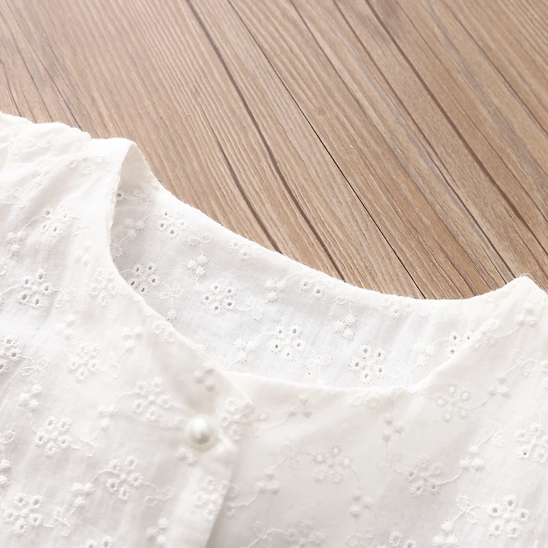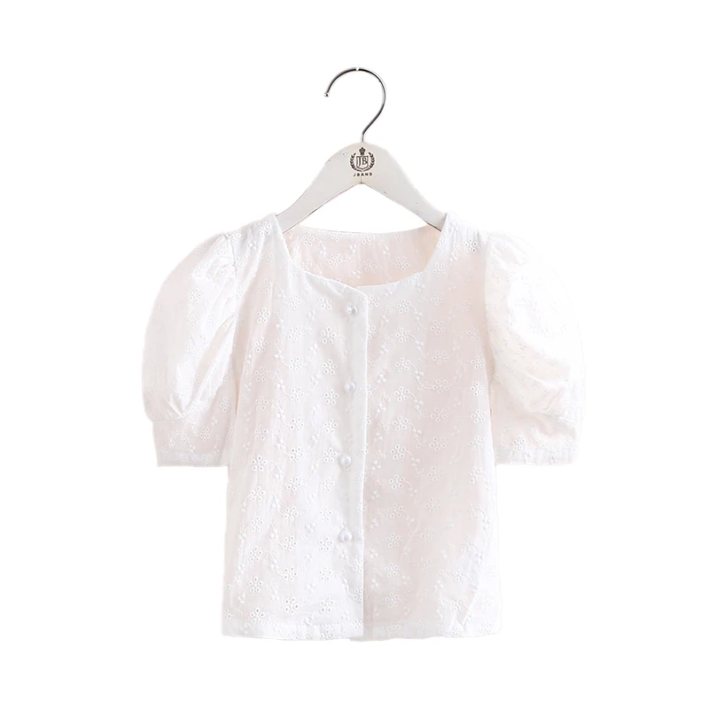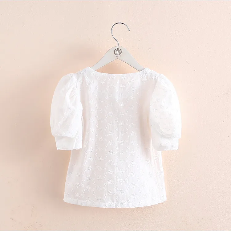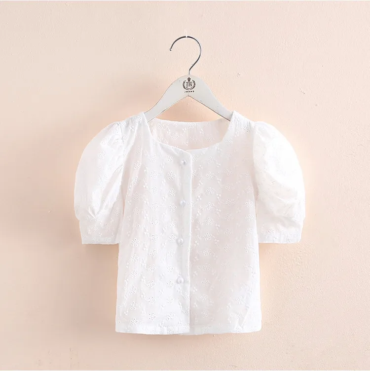2021 хит, летняя Модная белая хлопковая блузка с вышивкой и короткими рукавами-фонариками для маленьких девочек 2, 3, 4, 5, 6, 7, 8, 9, 10, 11, 12 лет