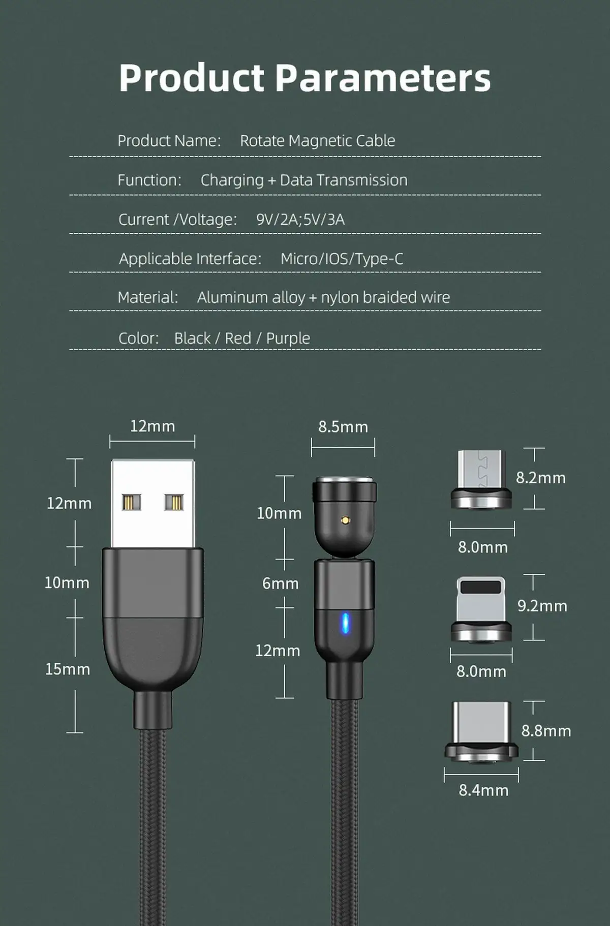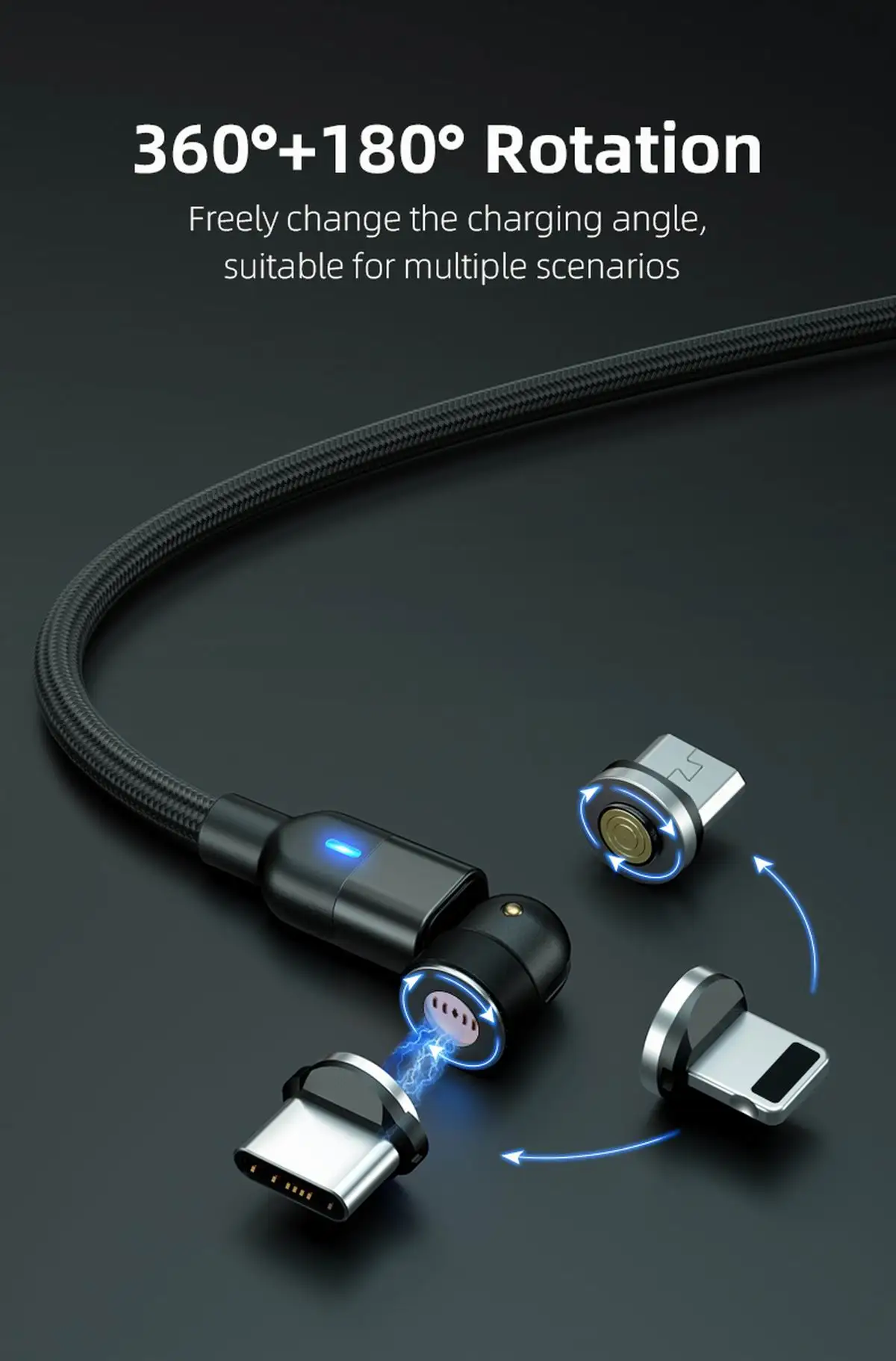 5 PIN USB кабели для телефона 3A Магнитный кабель для быстрой зарядки кабель для передачи данных свободное вращение разъем usb шнур type C зарядное устройство usb c кабель