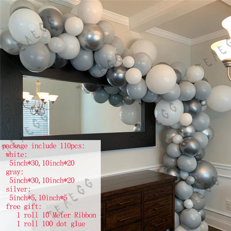 110 шт. Хромированные Металлические серебристый воздушный шар арки белые и серые шарики для детского душа 100 дней рождения Декорации на свадьбу, вечеринку Декор