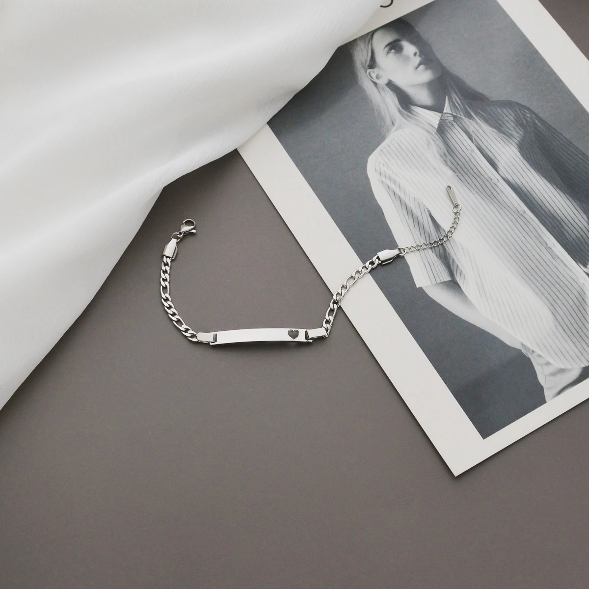 Браслет-цепочка UZone из нержавеющей стали Женский, романтическая гравировка имени для влюбленных, с пустым сердцем, подарок на день рождения, Ювелирное Украшение