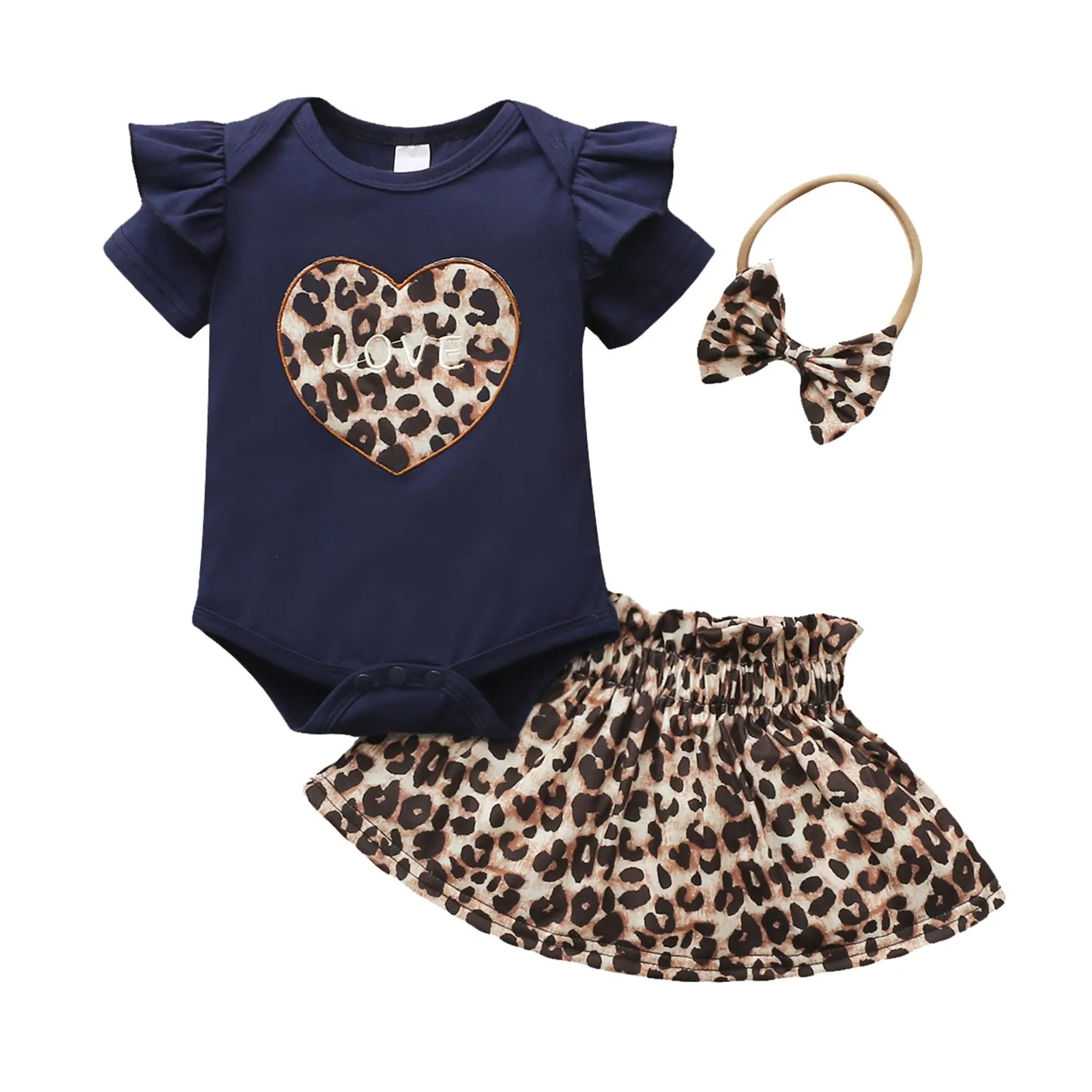 Комплект летней одежды для девочек, повседневные комплекты для девочек, Женское боди с оборками на рукавах + юбка, комплект одежды из 2 предметов, костюм, детский наряд