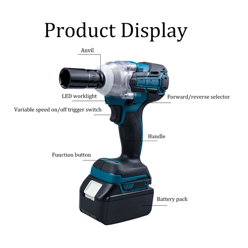 -520N.M высокий крутящий момент, плавный Переключатель изменения скорости.-Мощный электрический гаечный ключ, многоцелевой, супер мощный.-Вал из вольфрамовой стали, высокая твердость и износостойкость.-Подходит для строительных площадок, технического обслуживания, деревообработки и т. Д.-Бесщеточный двигатель не генерирует искры, когда он работает, и двигатель не изнашивается.