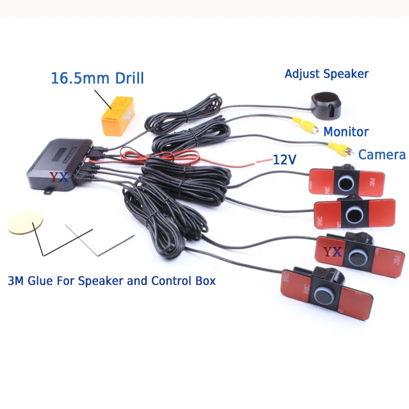Оригинальный 4 датчика s зуммер 16,5 мм, Автомобильный датчик парковки, видео, резервное копирование, радар, звуковой сигнал, зондовая система 12 В, 7 цветов